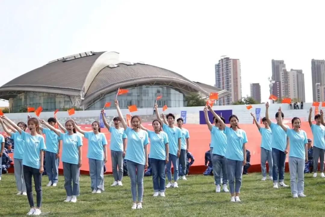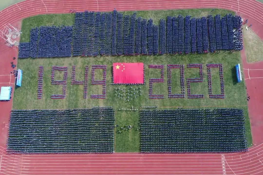 巨幅五星红旗进场,红旗两边由学生方队摆成“1949”和“2020”的数字,向中华人民共和国成立71周年致敬。全场师生挥动着手中的国旗,7000余名新生齐声合唱,表达对祖国深沉的爱,为伟大祖国喝彩,为中华民族歌唱。随后,全体新生在一片庄严肃穆的氛围中进行了中华人民共和国公民宣誓。这是来自青大学子的铿锵告白,表达爱国爱校的浓烈情感,洋溢着对美好未来的无限向往和坚定信心。