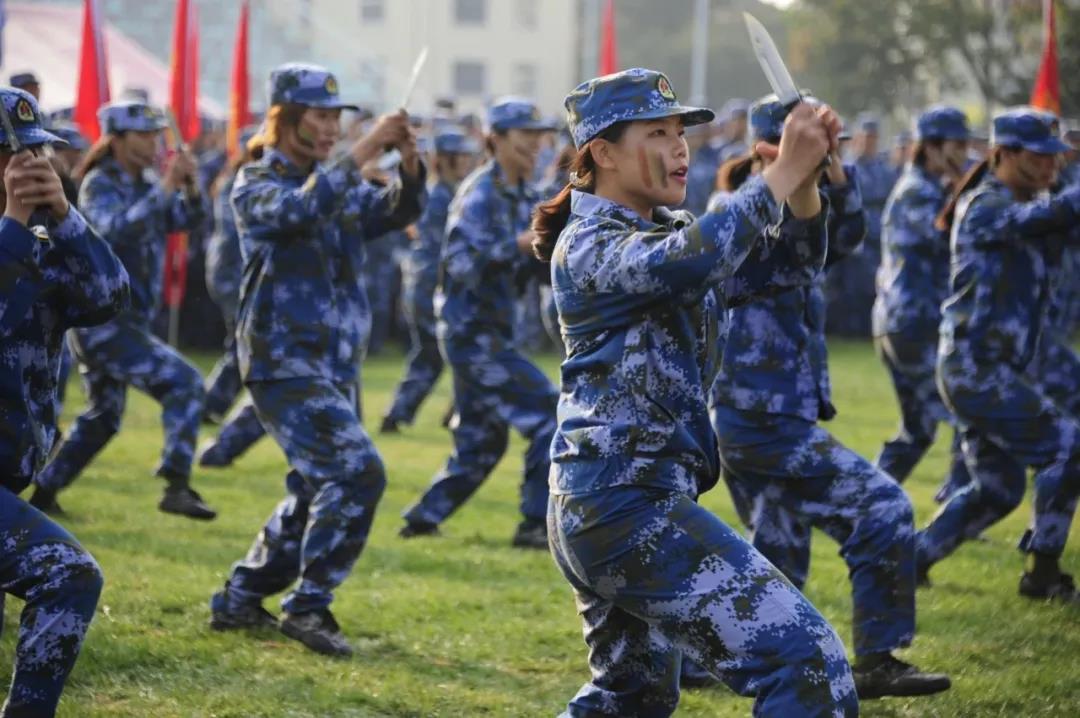 新生组成的方队迈着整齐而坚定的步伐走过主席台,他们军容整肃、口号嘹亮,彰显了新生自强不息、立志报国的壮志豪情。内务整理及紧急集合、女子匕首格斗术、擒敌拳、战术和战地救护等训练科目的演示,体现了军训塑造的良好风貌,赢得了现场观众的阵阵掌声。
