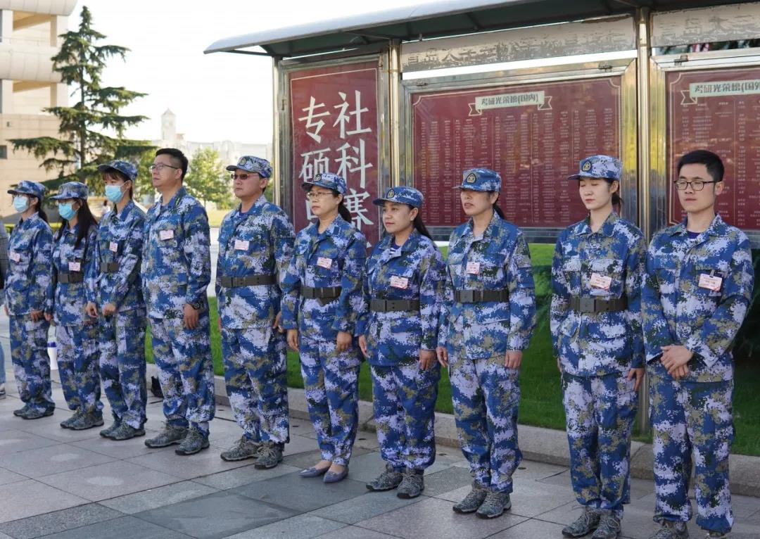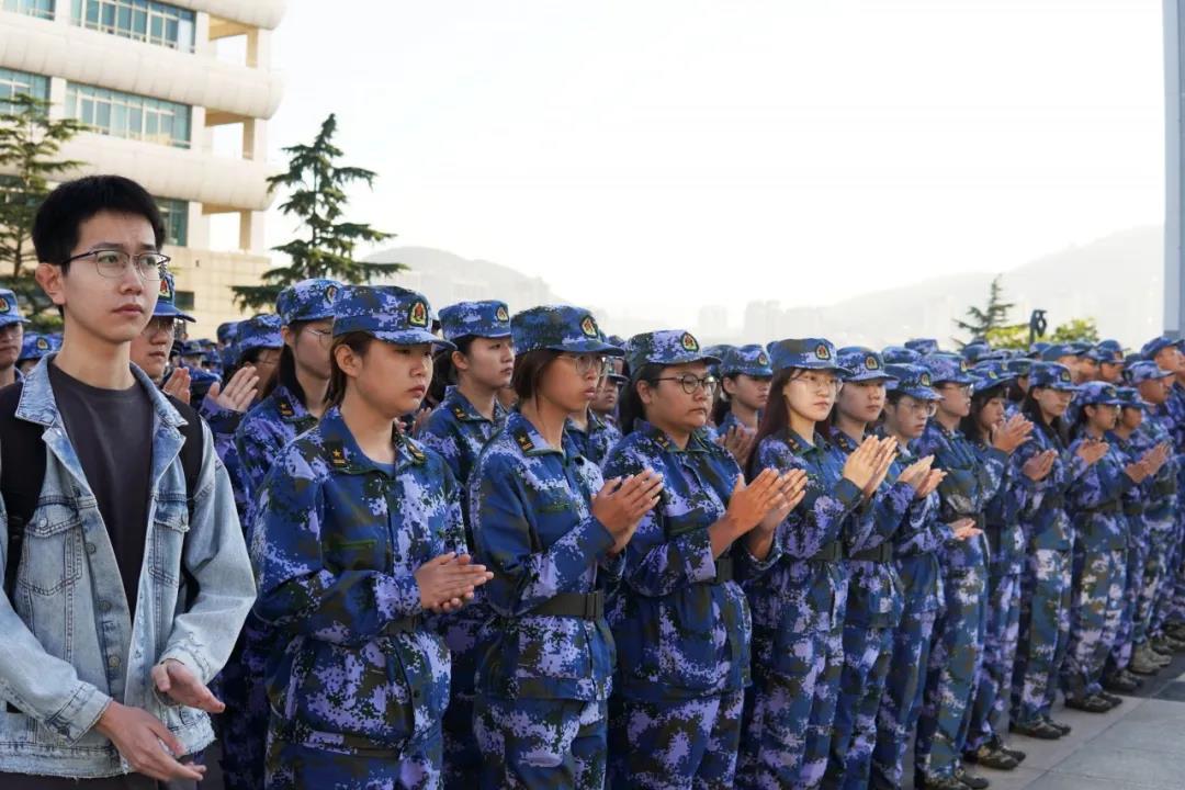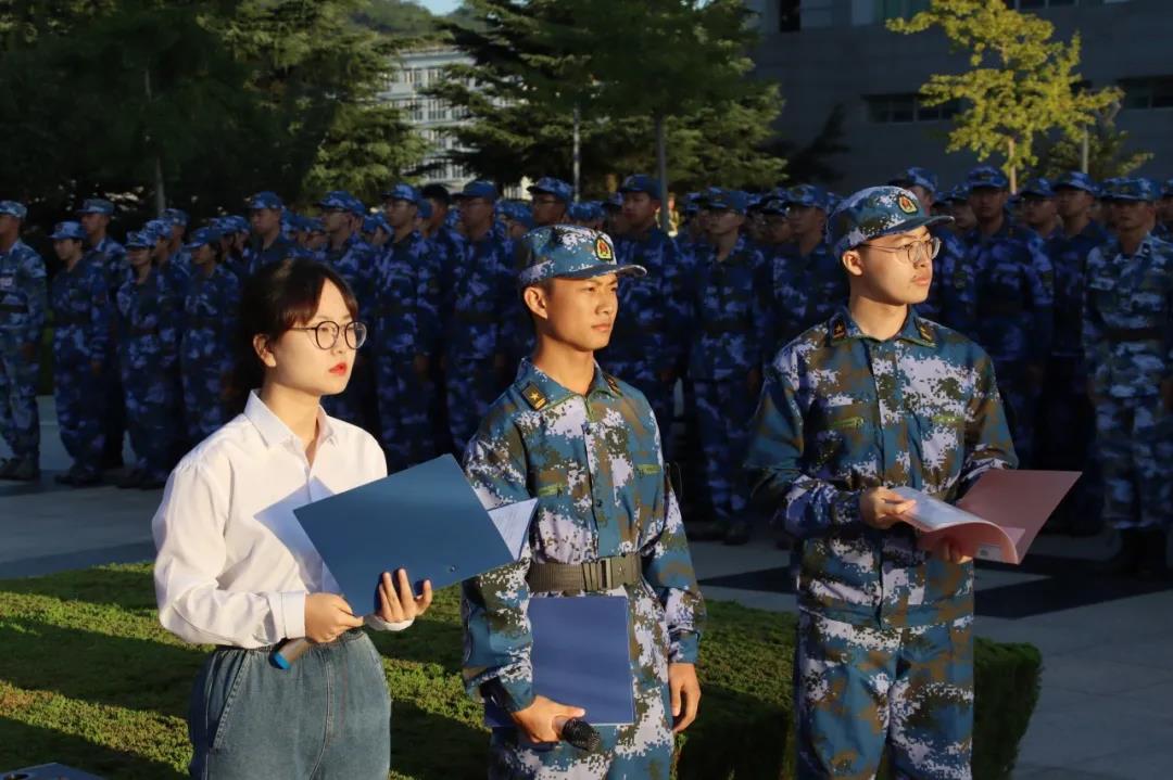 学生军训第四临时党支部2020级全体新生参加升旗仪式。