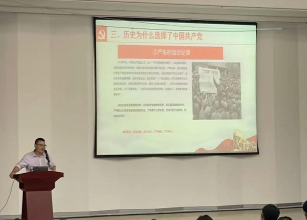 张启春老师向同学们介绍了入党程序和我校发展党员工作实施细则,强调作为新时代的学生,要积极向党组织靠拢,不仅是一种荣誉, 更是一种责任。