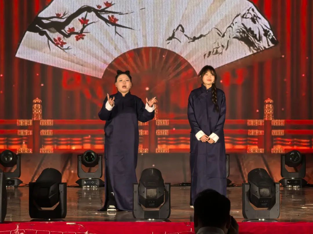 故事既亲切又搞笑,风格浮夸又可爱,台上二人一唱一和,用中国传统技艺相声逗得观众哈哈大笑,获得了观众的热烈掌声。