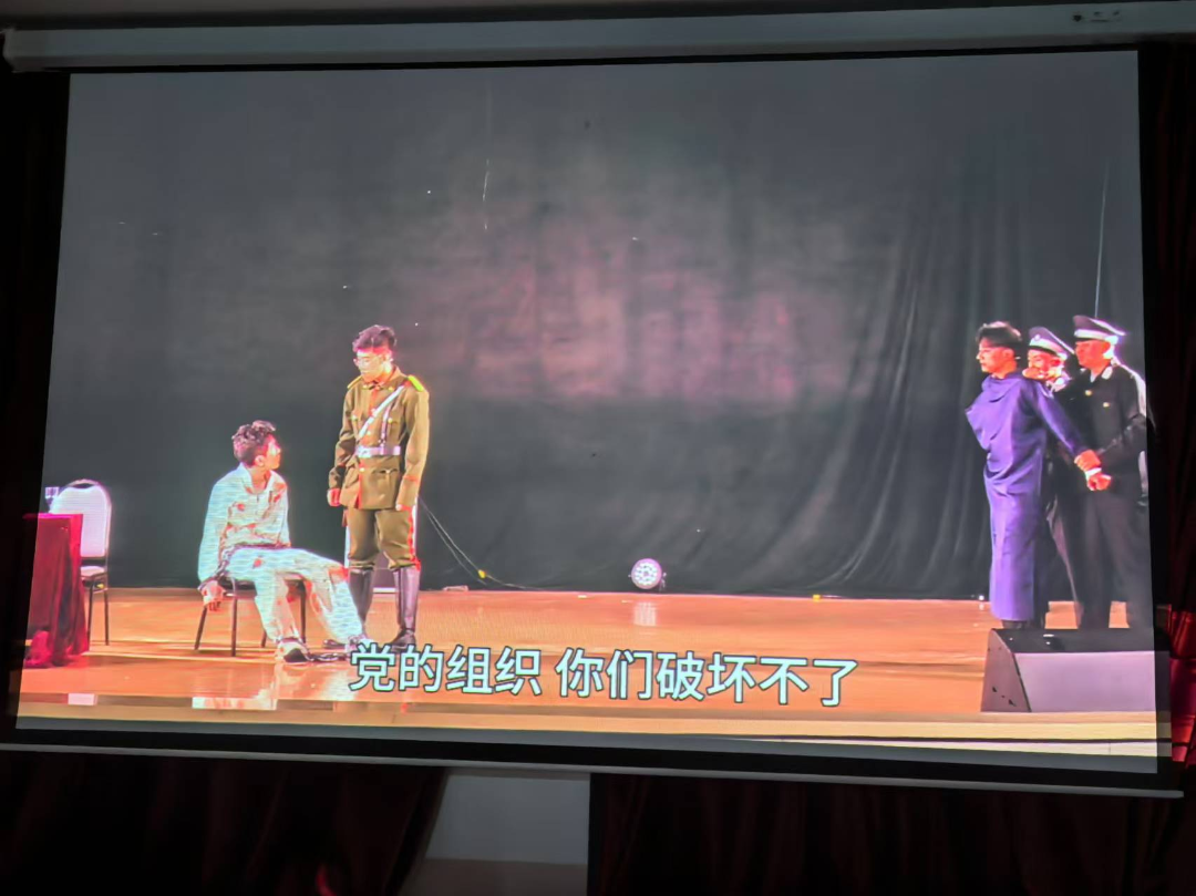 学生自编、自导、自演,剧本脱胎于著名小说《红岩》,并在原著的基础上进行二次创作,集中体现了共产党员在艰难环境下英勇奋斗、坚韧不拔、视死如归的革命精神。同学们在观看过程中表现出了高度的投入和深刻的情感共鸣,被剧中展现的共产党人“为国尽忠、为民效命、为党牺牲”的革命理想和献身精神所感染,更加深刻地认识到了美好生活的来之不易和党的艰辛奋斗历程。