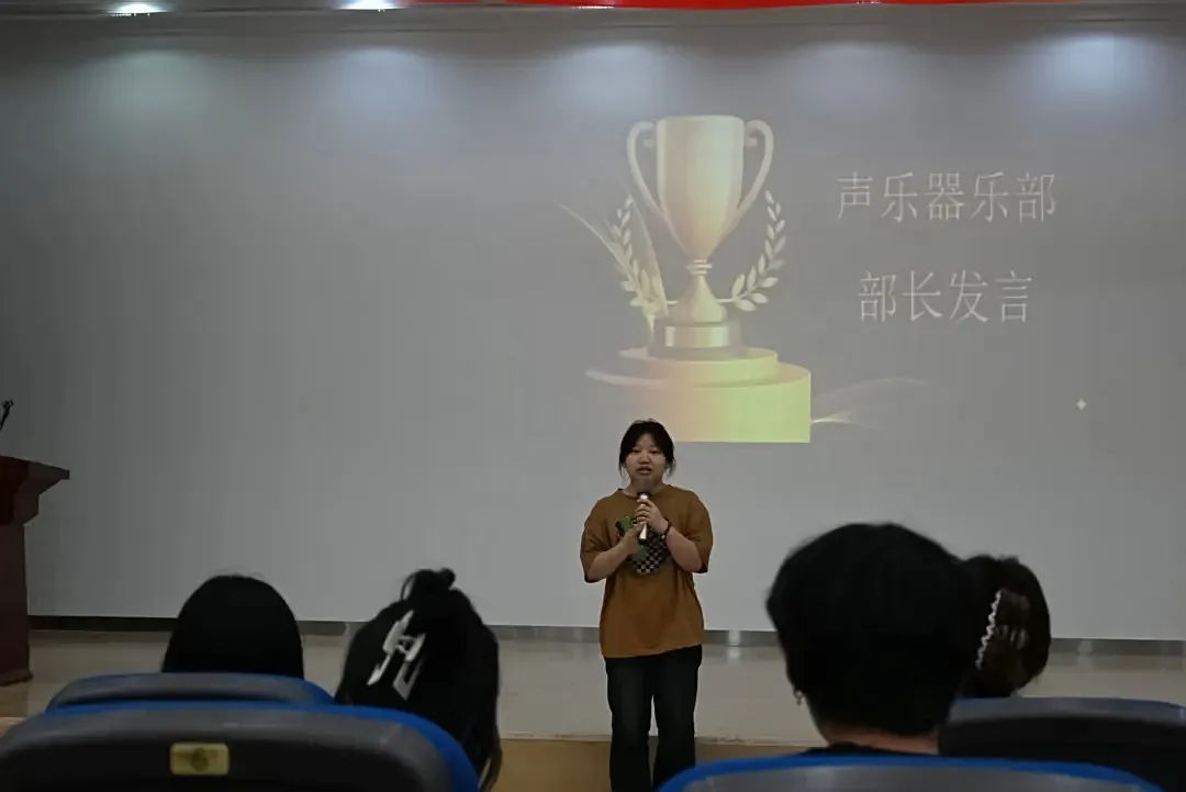 艺术团团长王昱斐,尹蕊走上讲台,以温暖真挚的话语,向全体成员传递鼓励与期许。细数艺术团过去一年斩获的佳绩,对每位成员的辛勤付出致以诚挚谢意。