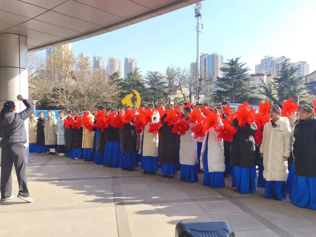 比赛前夕,每位成员都积极调整自身状态,克服紧张情绪。站在舞台中央的那一刻,师生配合默契,当手中的红色捧花与党徽同时升起呈现党旗图案的瞬间,全场掌声响起。