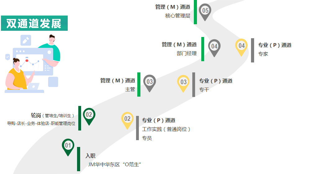 关于未来:通过定制的培养计划,促进个人角色认知转换、加深对公司业务领域的理解,全面提升业务能力及领导能力,打造复合型管理储备人才。