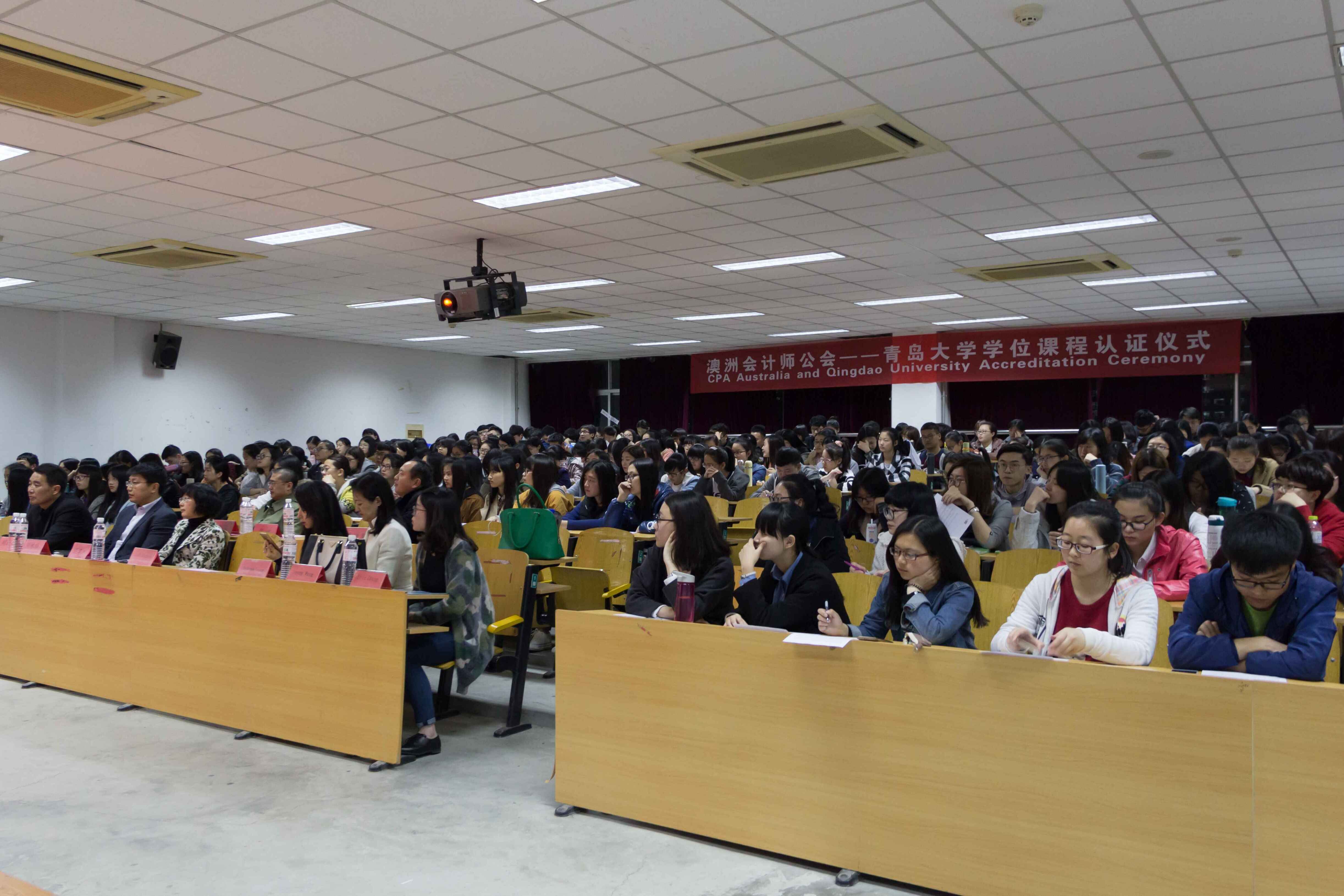 座谈会结束后,双方领导同赴图文三楼报告厅参加了认证仪式。仪式由会计学系主任范英杰老师主持,会计学系2014、2015级全体同学见证了此次认证仪式。