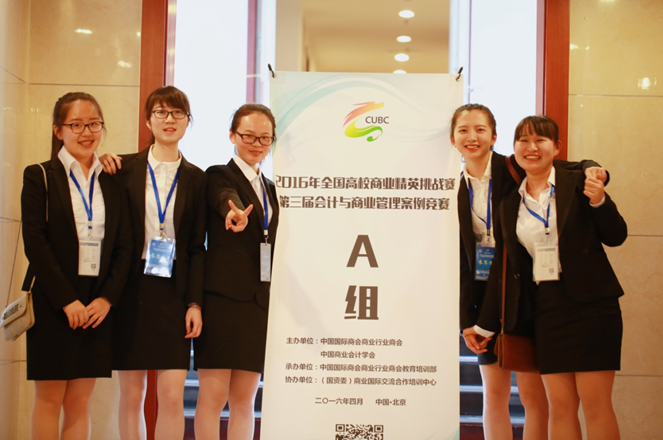 会计系首次参加该项赛事即入围决赛,张波、王健姝老师指导的由宋微、王晓岩、刘盛楠、梁知瑜、吴错组成的Wonderful团队获得团体三等奖。由李晓涵老师负责组织的个人知识赛中会计系学生共获得5个一等奖、6个二等奖和4个三等奖。