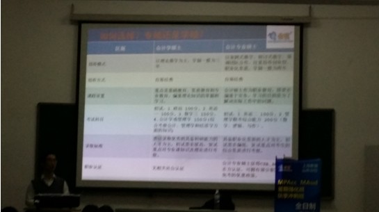 会计系于2014年3月19日邀请泰祺教育集团的老师来我校睿思楼六楼会议室举办MPAcc会计专业硕士讲座。