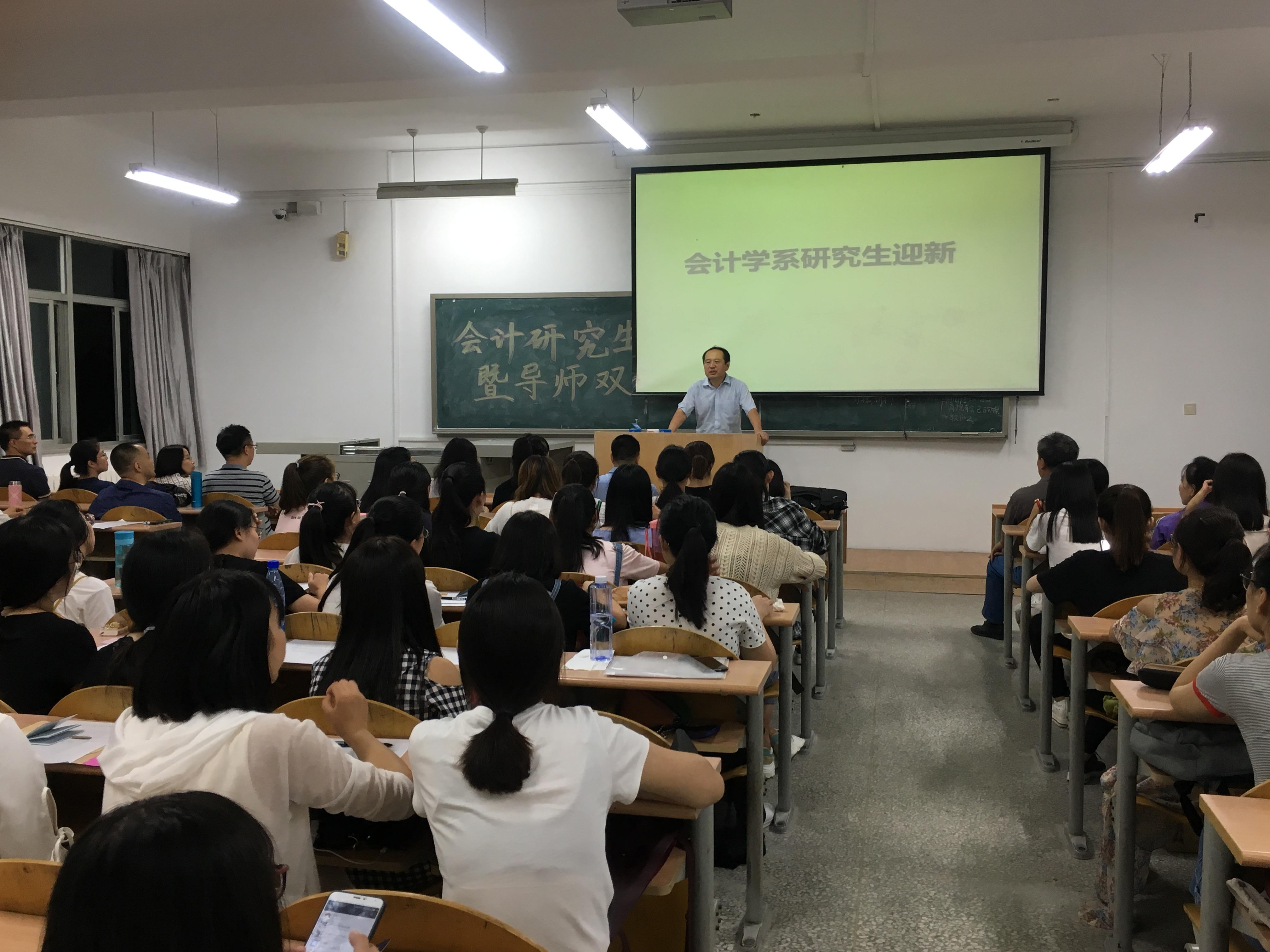 为了增强2018级研究生新生对研究生生活的深入理解,促进2018级研究生导师双选工作的顺利进行,会计学系于2018年9月14日晚上在金家岭校区1号教学楼102教室顺利召开2018级研究生开学教育暨导师双选会。