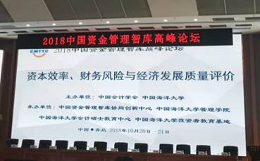2018年10月20-21日,由中国资金管理智库协同创新中心、中国海洋大学管理学院、中国海洋大学会计硕士教育中心、中国海洋大学投资者教育基地等承办的“2018中国资金管理智库高峰论坛”在青岛中国海洋大学成功举办。本次论坛的主题为“资本效率、财务风险与经济发展质量评价”,共有来自高校、科研院所、企业和专业媒体以及中国海洋大学的师生代表600多人参加。