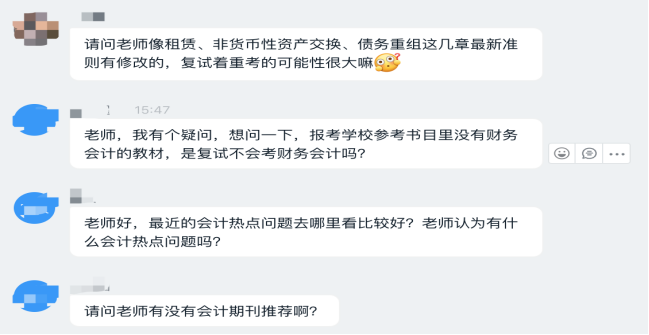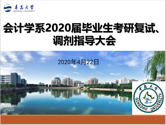 MPAcc招生计划30人,复试比为1:1.5,具体扩招名额要等研究生院的通知。因今年特殊的疫情防控形势,复试将取消笔试环节,采用线上面试的方式进行。面试主要考察基本概念、基本理论、专业英语和时事政治。此外,康老师讲到调剂到全日制会计专硕很难,绝大多数学校第一志愿都会招满,提醒有意调剂到非全日制会计专硕的同学注意上课方式、学费等问题。
