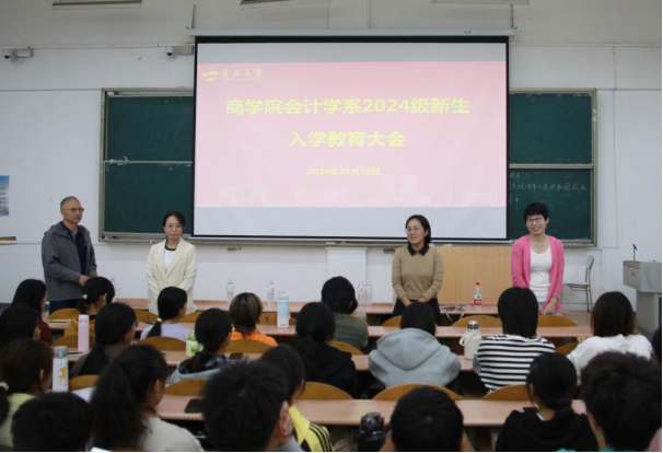 会计学系2024级新生入学教育大会在金家岭校区1号教学楼111举行。会计学系主任范英杰,副主任鲍在山,新生班主任和2024级全体新生出席会议,会议由新生辅导员陈鑫主持。