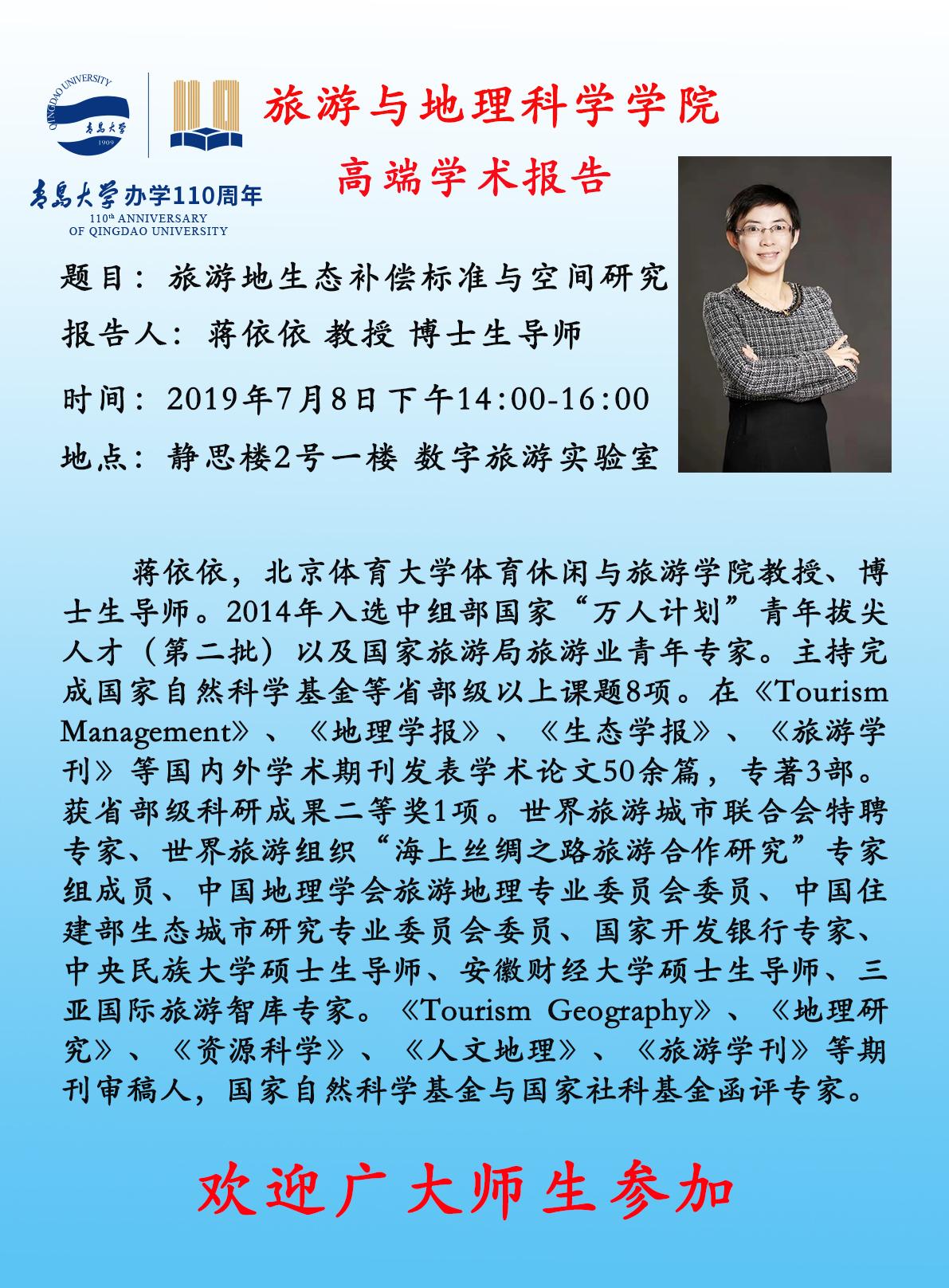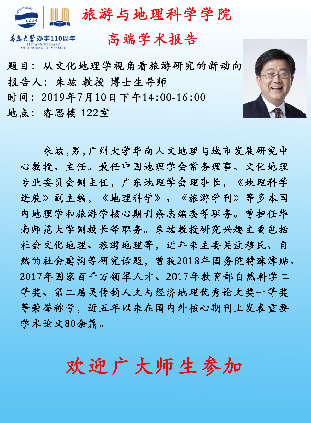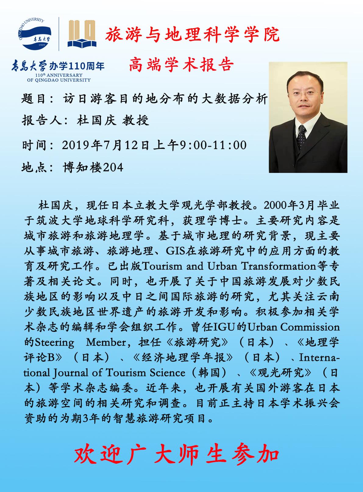 旅游与地理科学学院夏季学期高端学术系列讲座