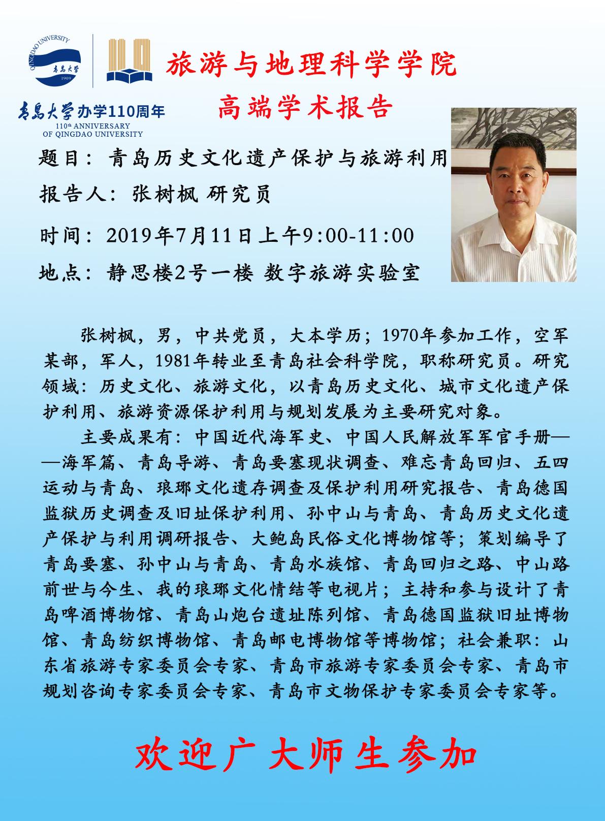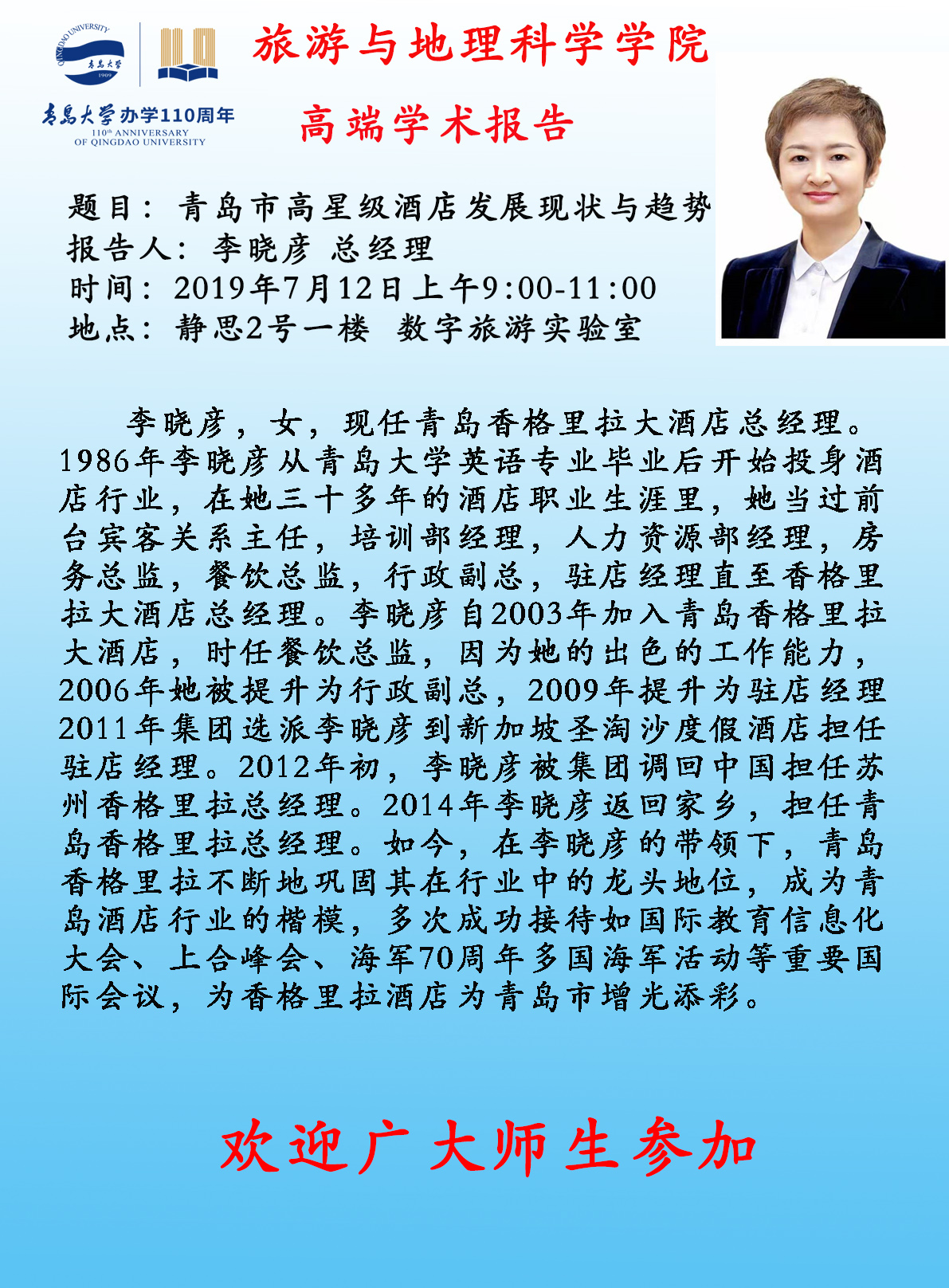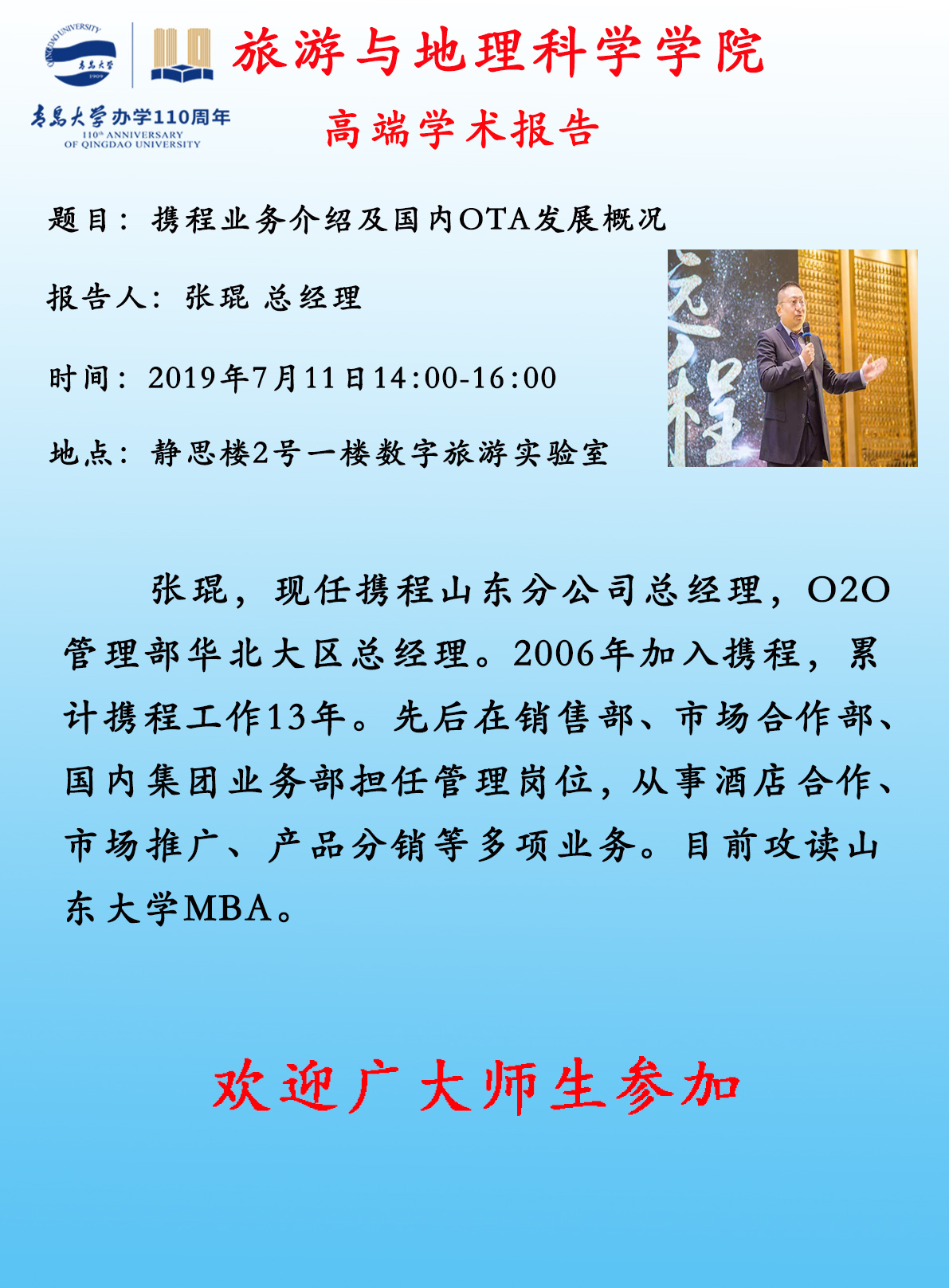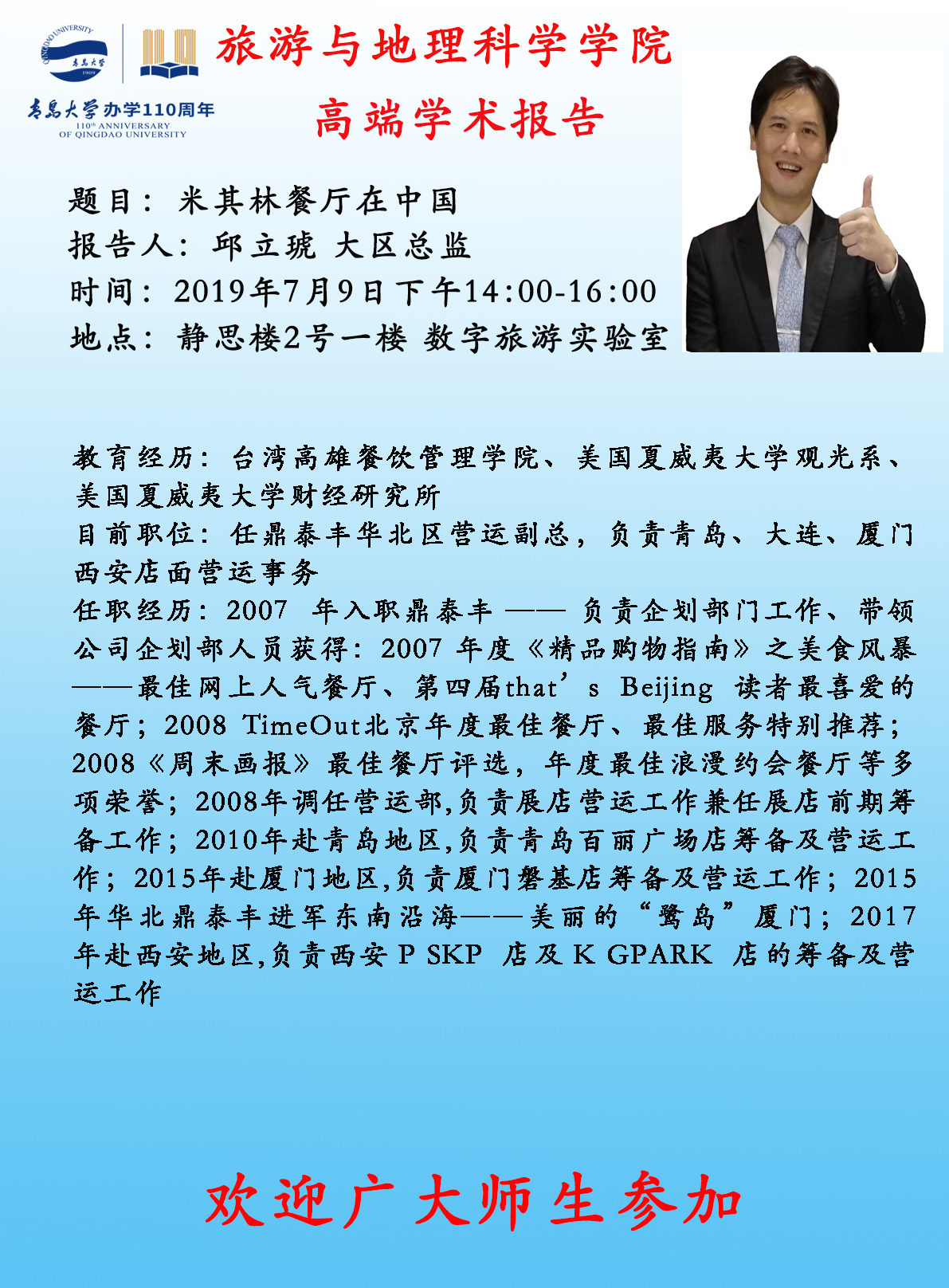旅游与地理科学学院夏季学期高端学术系列讲座