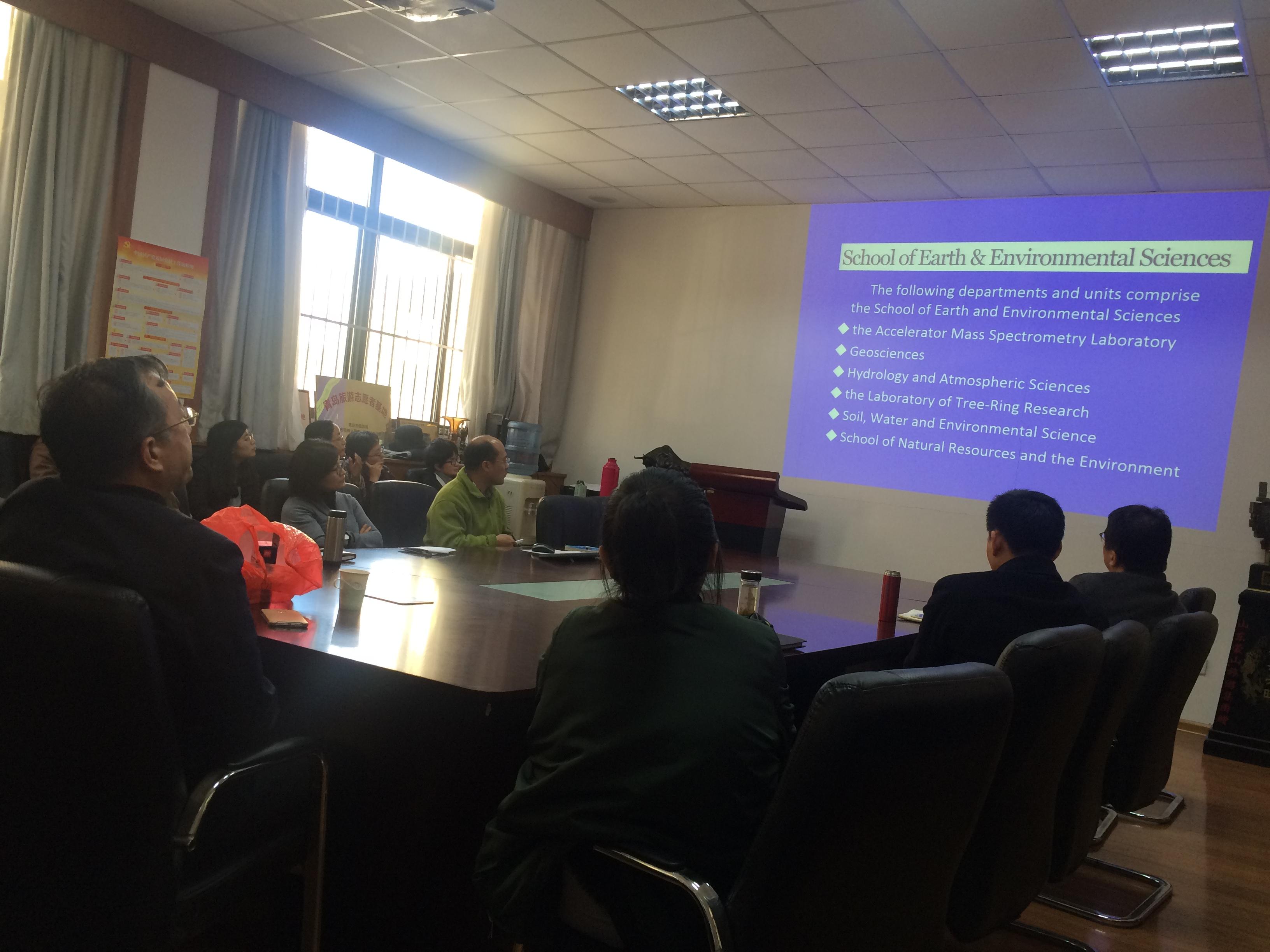 会上,赵玉宗就其在美国南佛罗里达大学的研究、学习和体验与大家进行了分享,特别是对其在美国学习与科研状况作了阐述,提到了此次访学的收获、感悟,并为今后访学的老师提出了中肯的建议。金玉实分享了在日本筑波大学的研究体会,并结合日本筑波大学的研究生课程体系对其在日本的研究作了报告。胡刚通过对美国亚利桑那大学和USDA-SWR中心及其研究流域的介绍,展示了自己的科研经历和心得体会。