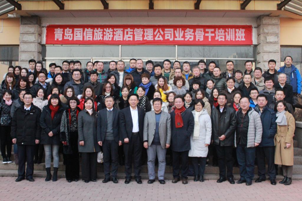 旅游与地理科学学院教学实习基地”牌匾。校党委常委副校长张铁柱、青岛国信集团总经理徐国君出席开班仪式并分别发表讲话表示祝贺。开班仪式由旅游与地理科学学院党委书记赵连章主持。根据双方协议,国信集团旅游酒店业务骨干培训时长为一年,由我校旅游与地理科学学院承担主要教学和实训任务。双方的合作,为学校更好服务青岛,与青岛市大型骨干企业深度融合、合作共赢翻开了新的篇章。