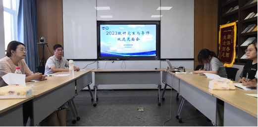 9月3日下午,我院2023级研究生与导师双选见面会分别于509室和501室同时召开。出席本次会议的有学院领导、本年度上岗导师和2023级研究生全体新生。见面会上,导师们依次介绍了各自的研究领域和对预选学生的要求,研究生们也分别汇报了各自的教育背景、行业经历。经过此次见面会,研究生新生们对各位导师有了更全面深入的了解,明确了今后研究生阶段的学习方向,为2023级研究生顺利完成学业提供了很大的帮助与支持。