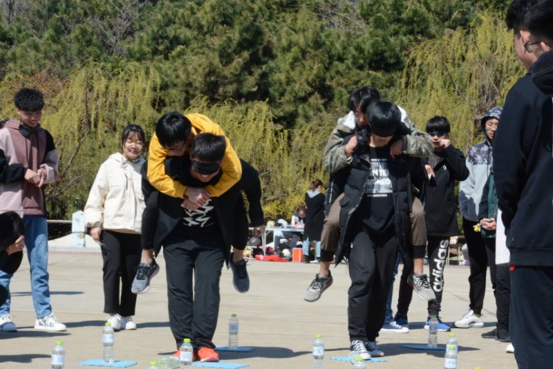 本次活动进行了多个趣味游戏,各个班级参赛者积极参与,进行了激动人心的“互相关爱”、烧脑的“寻找意中人”和紧张刺激的“贴膏药”等多个游戏。参赛者们团结协作、锐意进取,不仅展现出同学们良好的精神风貌,也表现出积极的团队合作意识。最后,工作人员为在各游戏中获胜的队伍颁发“最努力奖”、“地表最强奖”、“最具活力奖”等奖项。