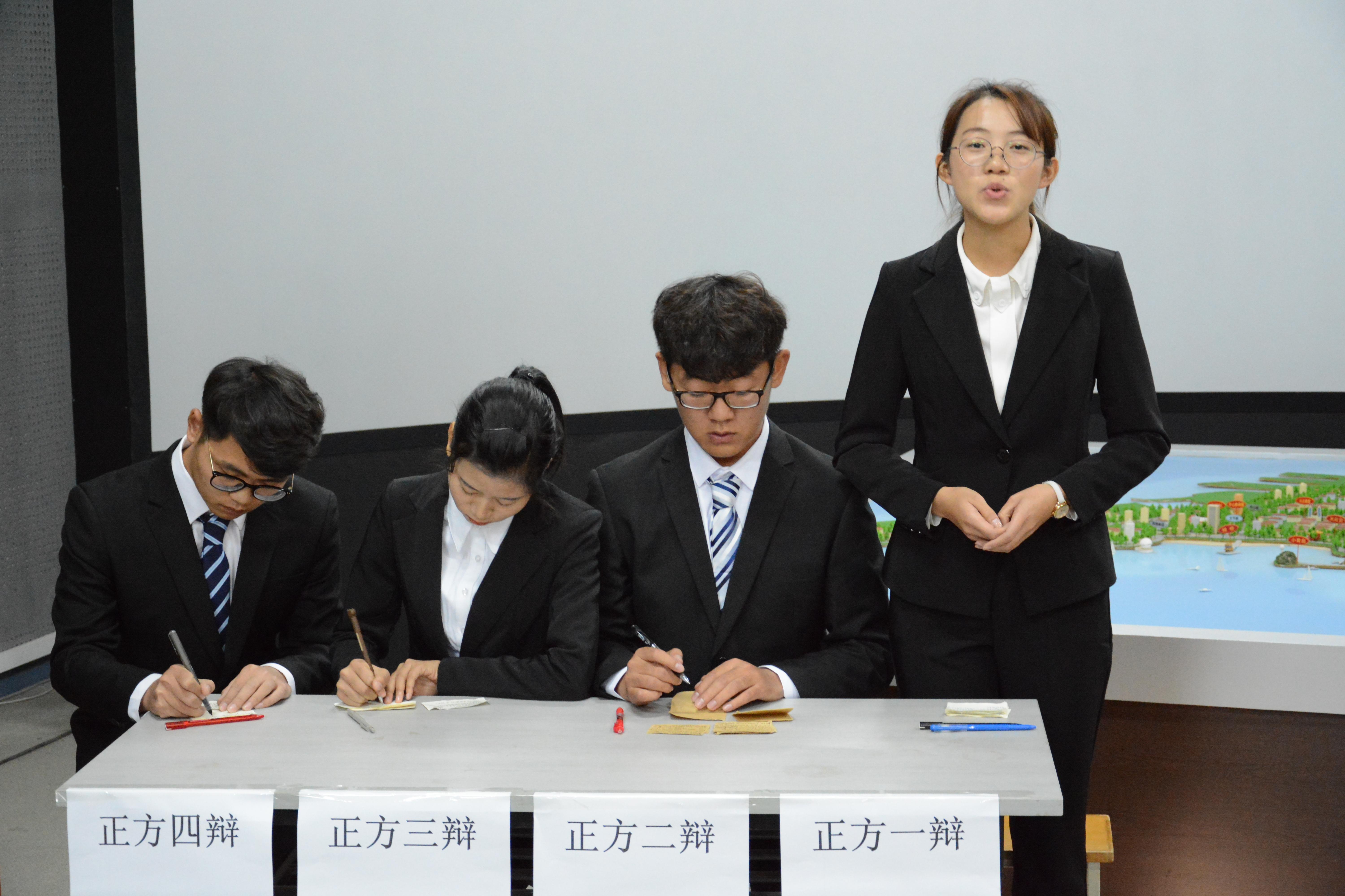 浮山校区旅游管理实验室举行。2015级优秀辩手王嘉青、王凇瑶和2016级优秀辩手张佳琪、刘威言担任此次比赛评委。