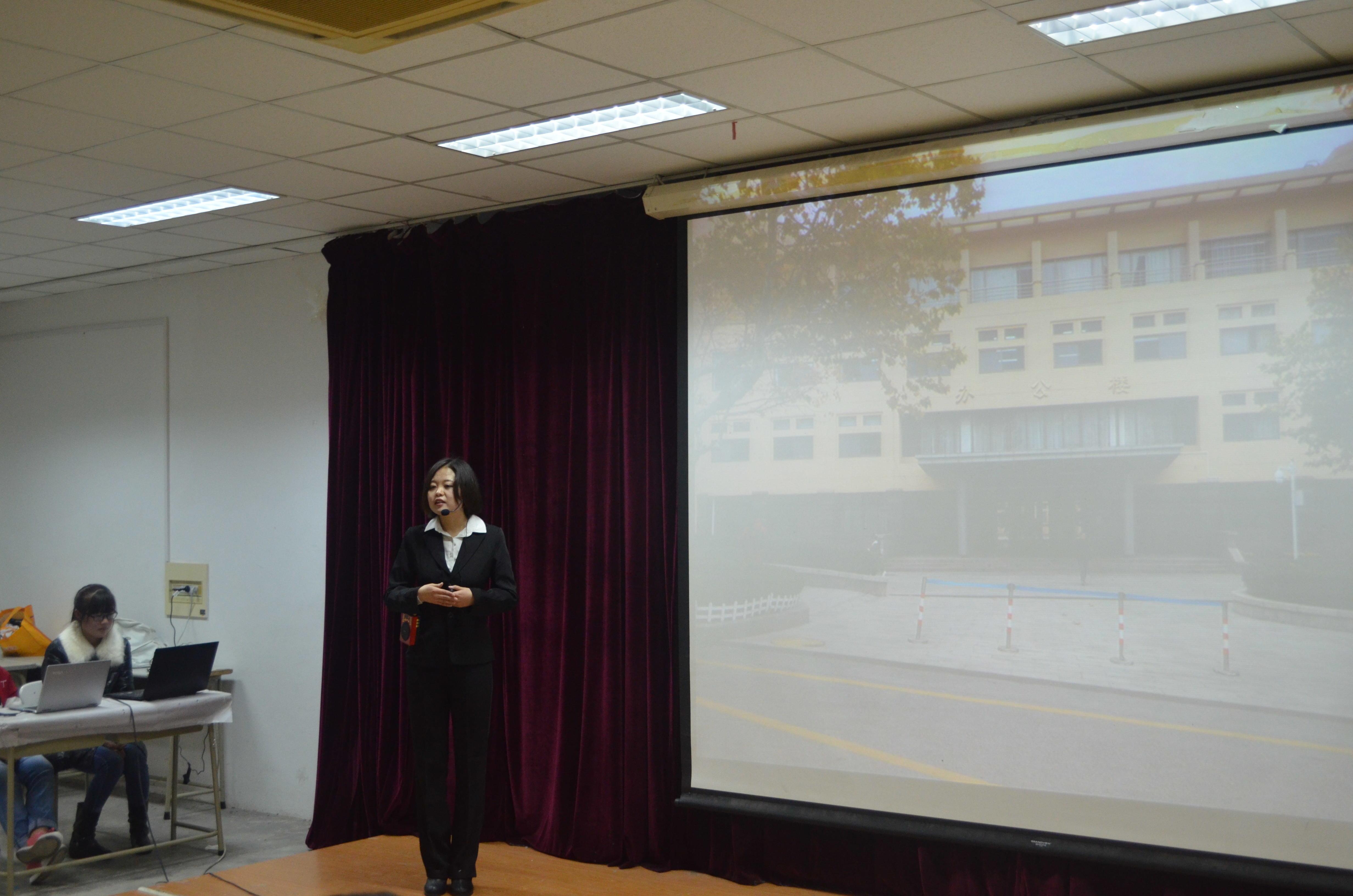 首先,校情校史讲解志愿者服务队15级队员郭媛从讲解队成员、任务分配和自身收获三方面向同学介绍了讲解队的概况。接下来,15级队员尹浩楠和王泽进行了现场模拟讲解,通过对黑料不打烊