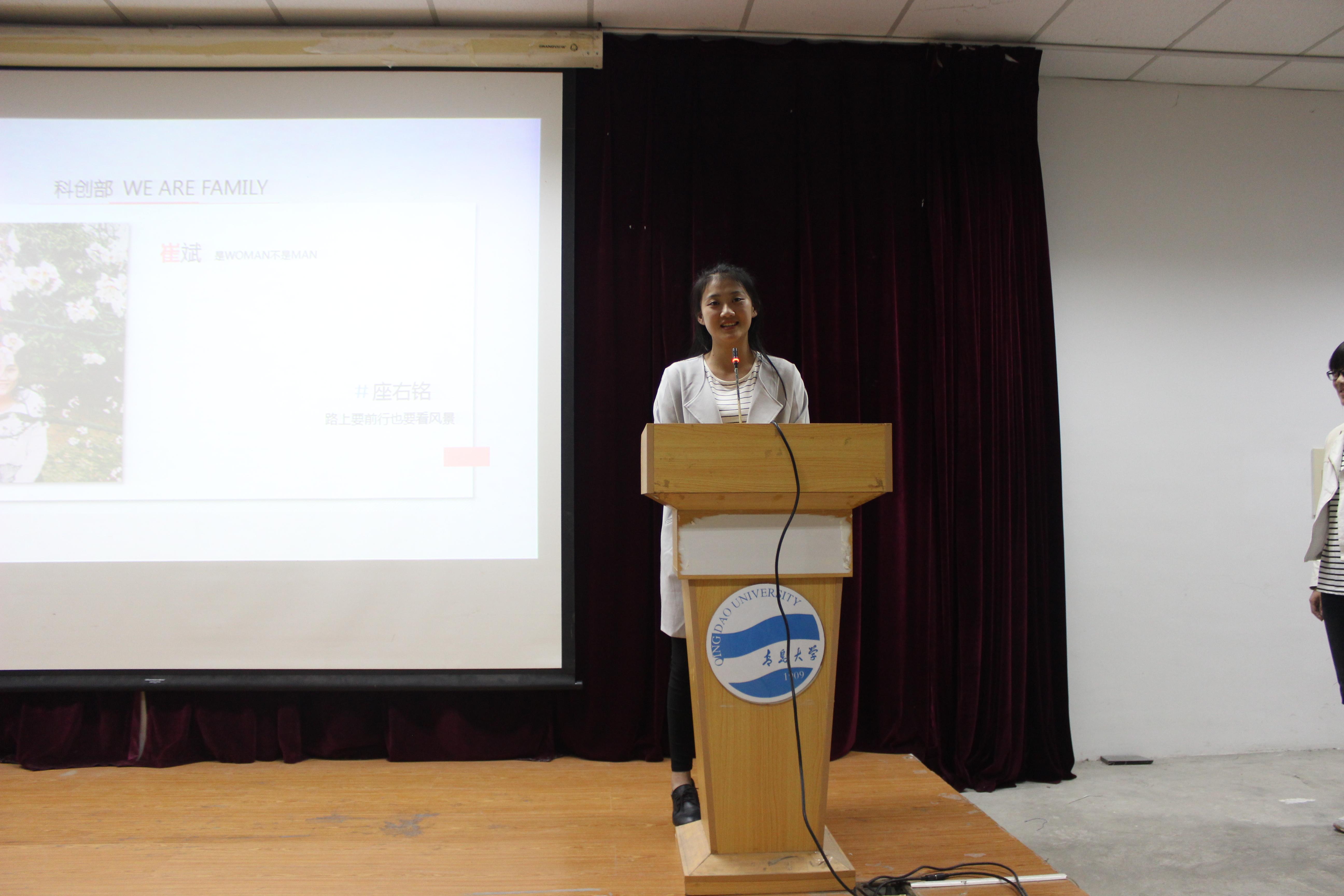 成立大会上,学生会主席团首先上台发言,表达了对新成员的欢迎以及对大家的期望,鼓励大家“成功不必在我,而功力必不唐捐”,只要坚持不懈、不忘初心,就能收获属于自己的未来。随后,学生会办公室、宣传部、文艺部等十大部门依次上台,从部门成员、部门职能及工作计划等方面作了各具特色的介绍,展现出对今后学生会工作的热情和自信。