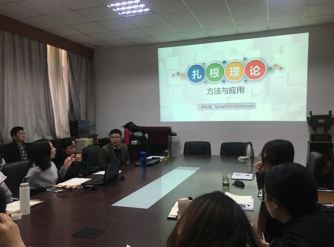 活动伊始,樊博士结合自身的研究经历,从扎根理论的内涵与方法特质、扎根理论的流派及演变、扎根理论应用的规范技术流程、采用扎根理论进行研究成果呈现的常见问题及经验技巧等几个方面系统、深入地阐释了扎根理论的方法内涵与应用规范。随后,与会老师及同学们进行了热烈讨论和交流。