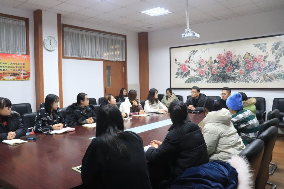 浮山校区睿思楼122室召开,旅游与会展管理系潘永涛老师出席本次会议,校情校史讲解队全体成员参加。