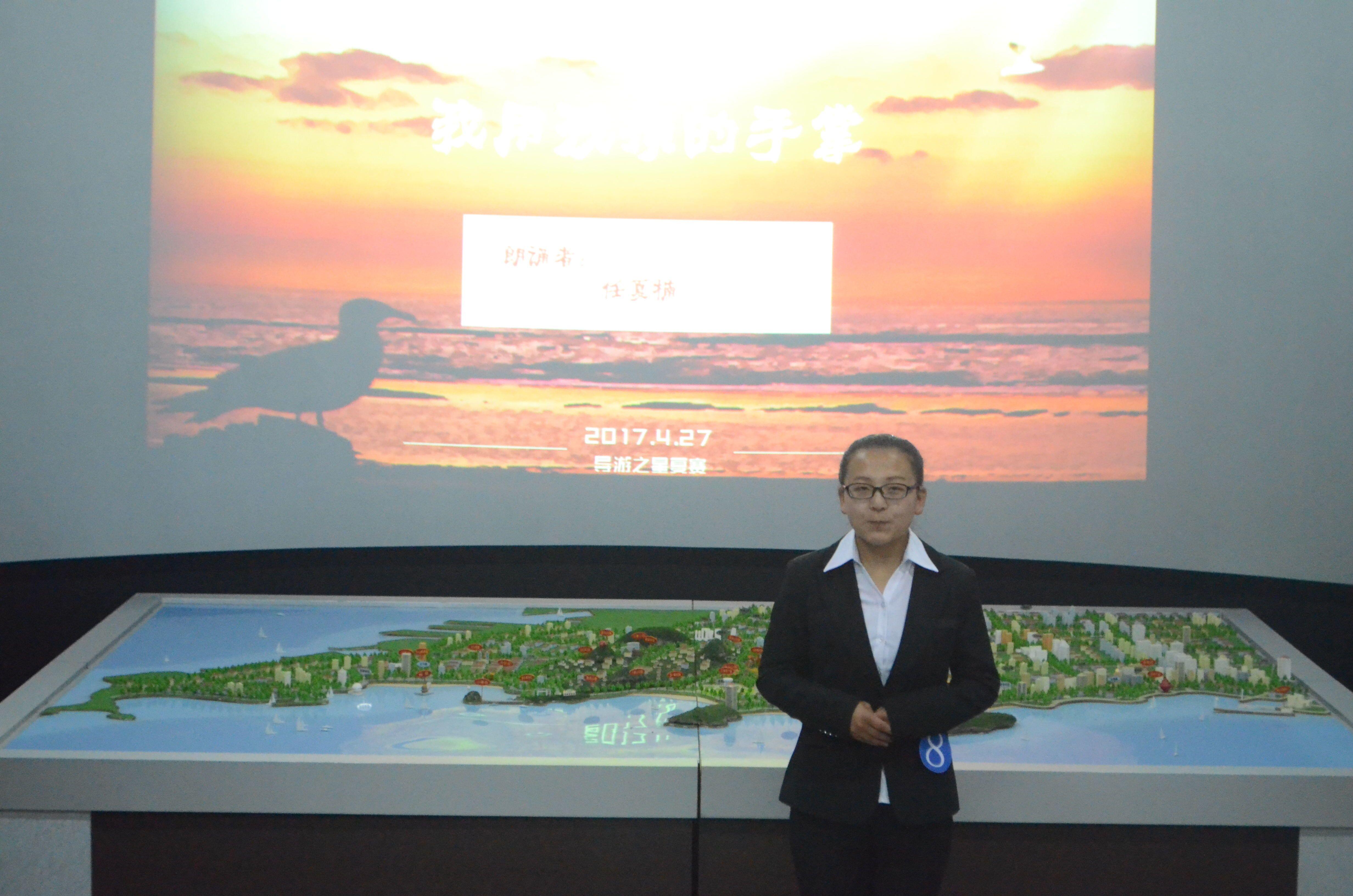 金家岭校区2号实验楼举行,从中选出的19名选手进入到了本次复赛。19名选手被分成3组,分别通过导游词讲解、才艺表演两个环节进行展示。选手们分别讲解了青岛的五四广场、栈桥、杭州的西湖、大理的蝴蝶泉等著名景点,还有选手通过全英文式讲解向大家展示嘉峪关的风采。接下来,选手们各展其才,进行了歌舞、相声、诗朗诵、魔术和巴乌独奏等才艺表演。最后,评委对每位选手进行了详细点评,希望选手们能够扬长避短,在接下来的比赛中有更好的发挥。