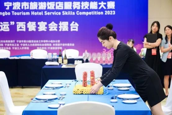 近日,以“迎亚运盛会,展行业风采”为主题,由宁波市文化广电旅游局、宁波市总工会、宁波市人力资源和社保局、共青团宁波市委共同主办,宁波市饭店业协会、宁波工人疗养院承办,宁波旅游学院协办的2023年宁波市旅游饭店服务技能大赛,在象山县的宁波工人疗养院举行。我院21级酒店管理专业矫洋洋、耿艺铭、姜珊在比赛中获得佳绩。