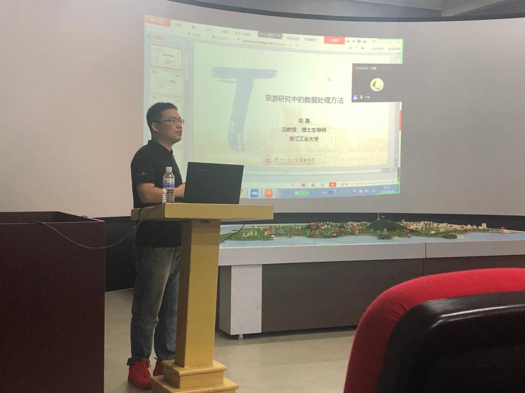 9月3日,旅游与地理科学学院邀请了浙江工业大学管理学院副教授、博士生导师赵磊博士做夏季学期高端学术报告,报告会在静思楼数字旅游实验室进行,采用线上线下相结合的方式进行,学院老师和研究生参加报告会。