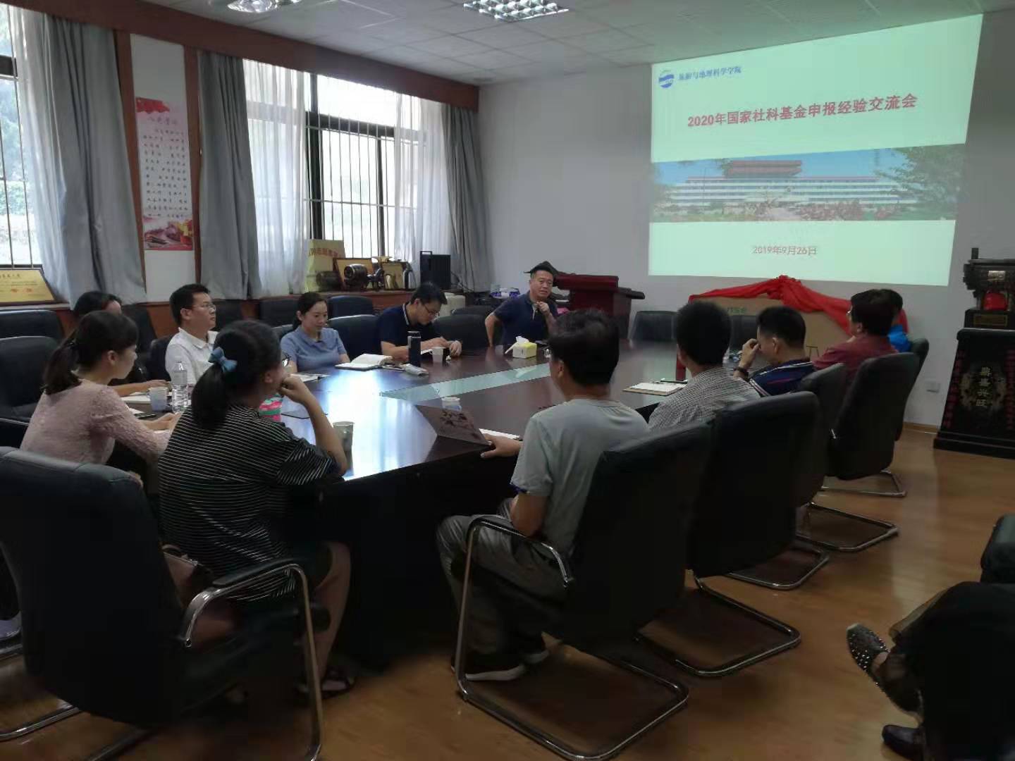 9月26日下午1点半,旅游与地理科学学院在睿思楼122会议室举办2020年国家社科基金课题申报经验交流会。会议由肖建红院长主持,有意向申报国家社科基金的老师参加了本次会议。