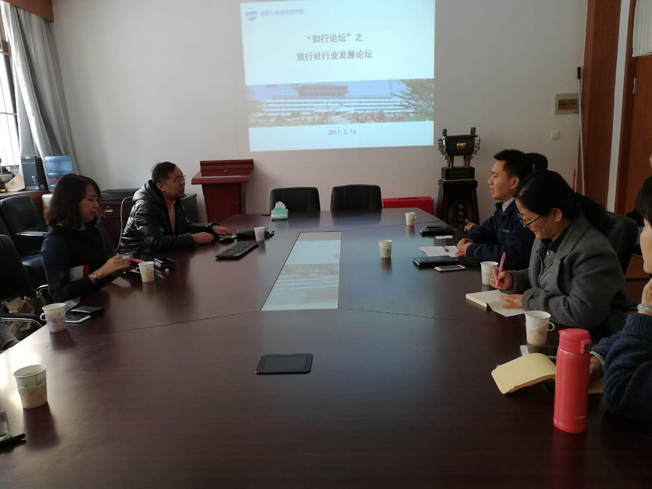 2017316日下午,山东港中旅国际会议展览有限公司执行总经理徐丽丽女士、山东万达国际旅行社有限公司副总经理王晓光和中国国旅(青岛)国际旅行社有限公司入境中心副总经理丁宁女士应邀到旅游与地理科学学院进行学术交流,交流会由旅游与地理科学学院张言庆副院长主持,旅游与地理科学学院师生参加了此次交流会。