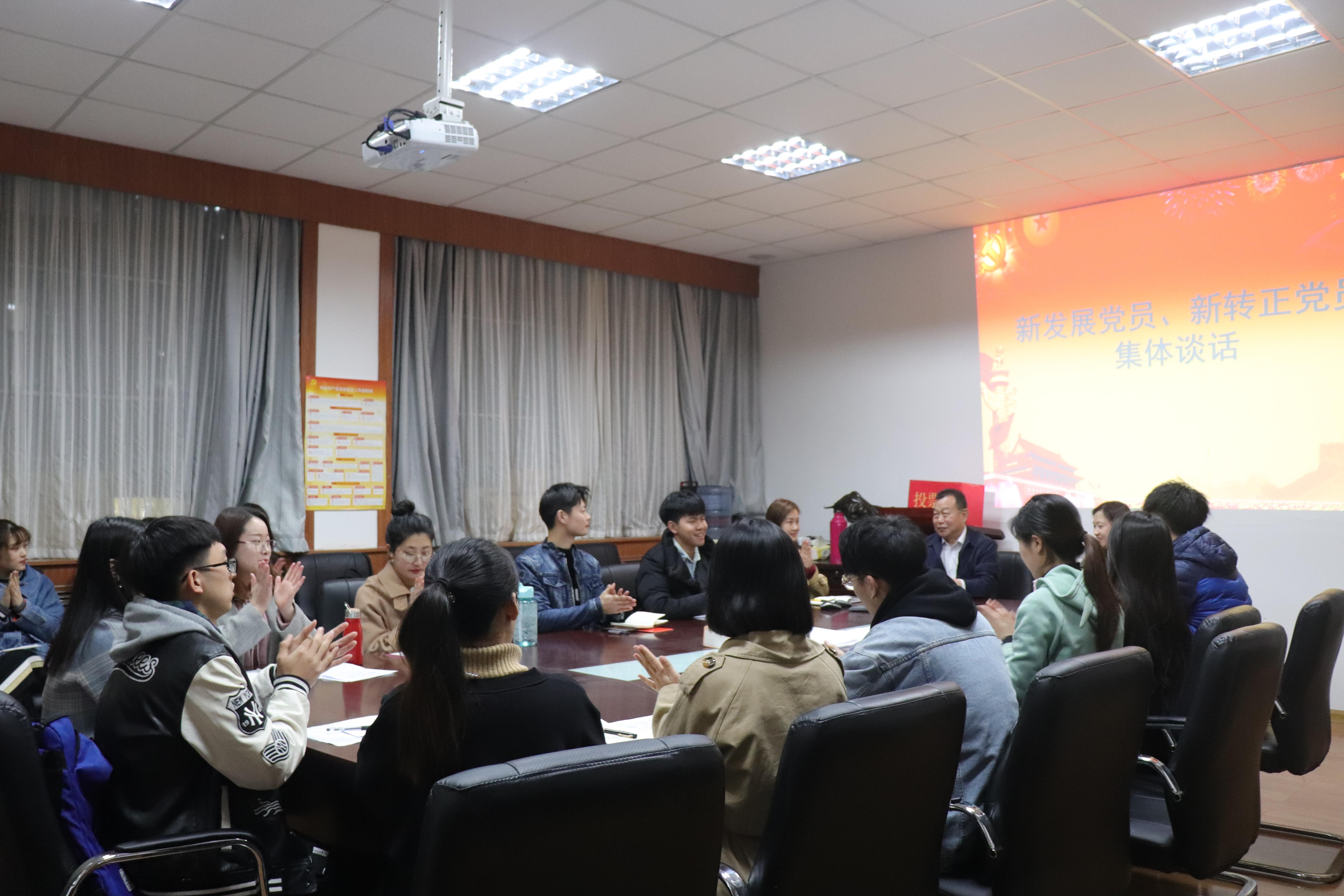 首先,院党委书记刘善东同志对我院新发展党员、新转正党员进行集体谈话,刘书记强调作为一名合格的共产党员,首先要讲学习;其次要讲政治,要强化党员的身份意识;最后要讲正气,规范自身行为,发挥模范带头作用。此外刘书记还叮嘱大家要珍惜自己的政治生命。随后,葛晓茜同志代表本科生党支部作述职报告,总结了2018年一年来党支部开展的工作,同时对存在的问题和不足做出深刻剖析,并提出改进措施。与会党员就党支部工作进行了民主评议。接着,与会党员依次进行个人问题剖析,开展深刻的批评与自我批评。随后,经过党员评议环节,九名党员评议结果为优秀。会议最后,党支部书记葛晓茜同志进行总结发言,她提出在我校2019年工作要点中将今年确定为“支部建设年”,作为学生党支部,要通过规范支部组织建设,进一步加强支部的组织力、凝聚力和战斗力,同时,希望党员能够发挥“一名党员一面旗帜”的带头作用,成为朋辈学习的榜样,经常性地进行自我剖析,更好地提升自己。