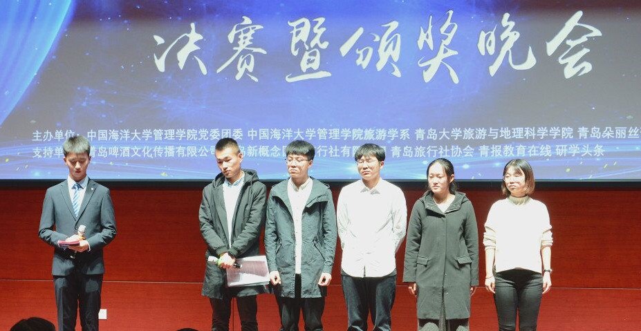 第四届旅游DIY大赛决赛暨颁奖晚会在中国海洋大学崂山校区管理学院三楼报告厅举行。我院的两支队伍:筑梦者队、追梦之旅队代表我院参加了本次比赛。其中,筑梦者队团队成员为孟逸飞、韩秀亮、张瑜、杨琨、崔倩怡、刘文淞,追梦之旅队团队成员为李林、唐雨桐、徐晓文。