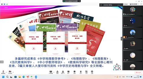 为促进学科教学地理专业硕士研究生深入了解中学地理课程教学的现状特征、教学内容,把握新时代中学地理教学的新思路和新动态,培养研究生的中学地理教学专业技能,旅游与地理科学学院于20221126日邀请山东省教科院地理教研员(高级教师)甄鸿启、青岛市西海岸新区博文中学副校长(正高级教师)胡学发、胶州市教育和体育局教研员(高级教师)朱铎锋、胶州第七中学高级教师苑文春、青岛市即墨区普东中学正高级教师邱秀玉和一级教师梁洁毓举办了2022年第2期地理名师进课堂——青岛名师专家讲座。6位地理名师通过腾讯会议线上为黑料不打烊 旅游与地理科学学院硕士研究生传授中学地理教学经验。