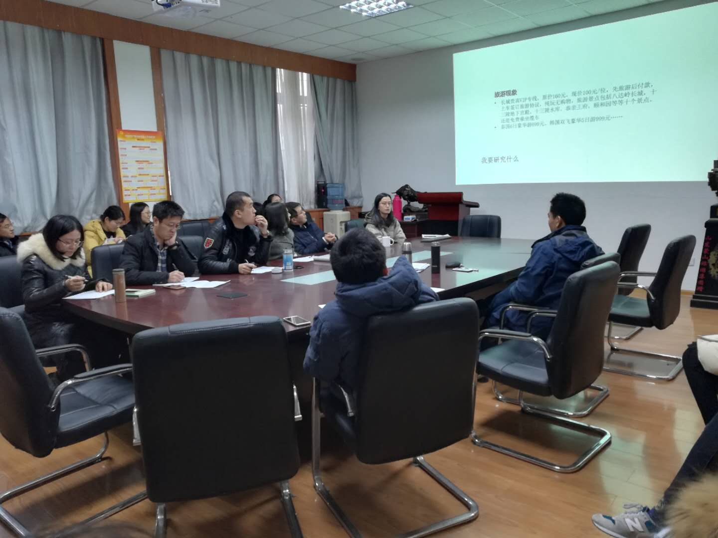 2018-2019年度研究生学术交流年会旅游与地理科学学院分会场活动在睿思楼122会议室举行,本次会议由副院长张言庆主持,部分教师和全体全日制研究生参与了此次学术交流年会。