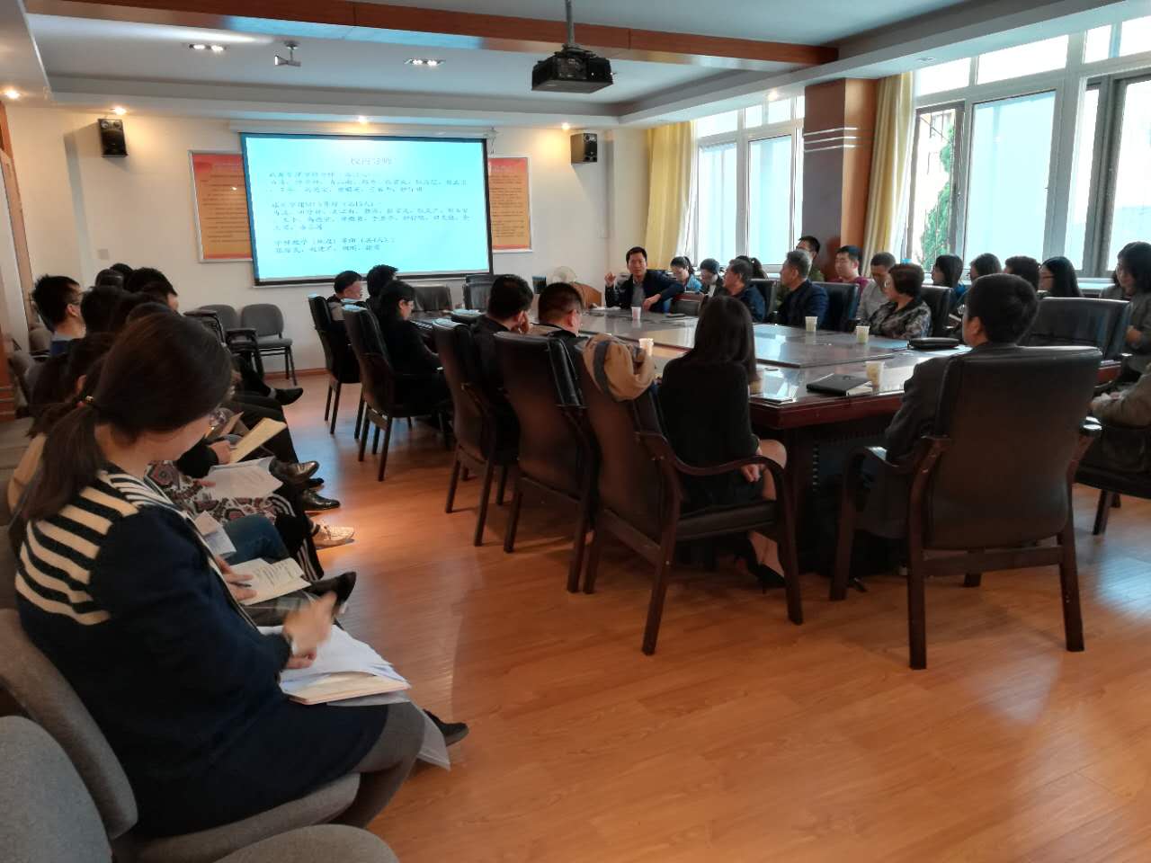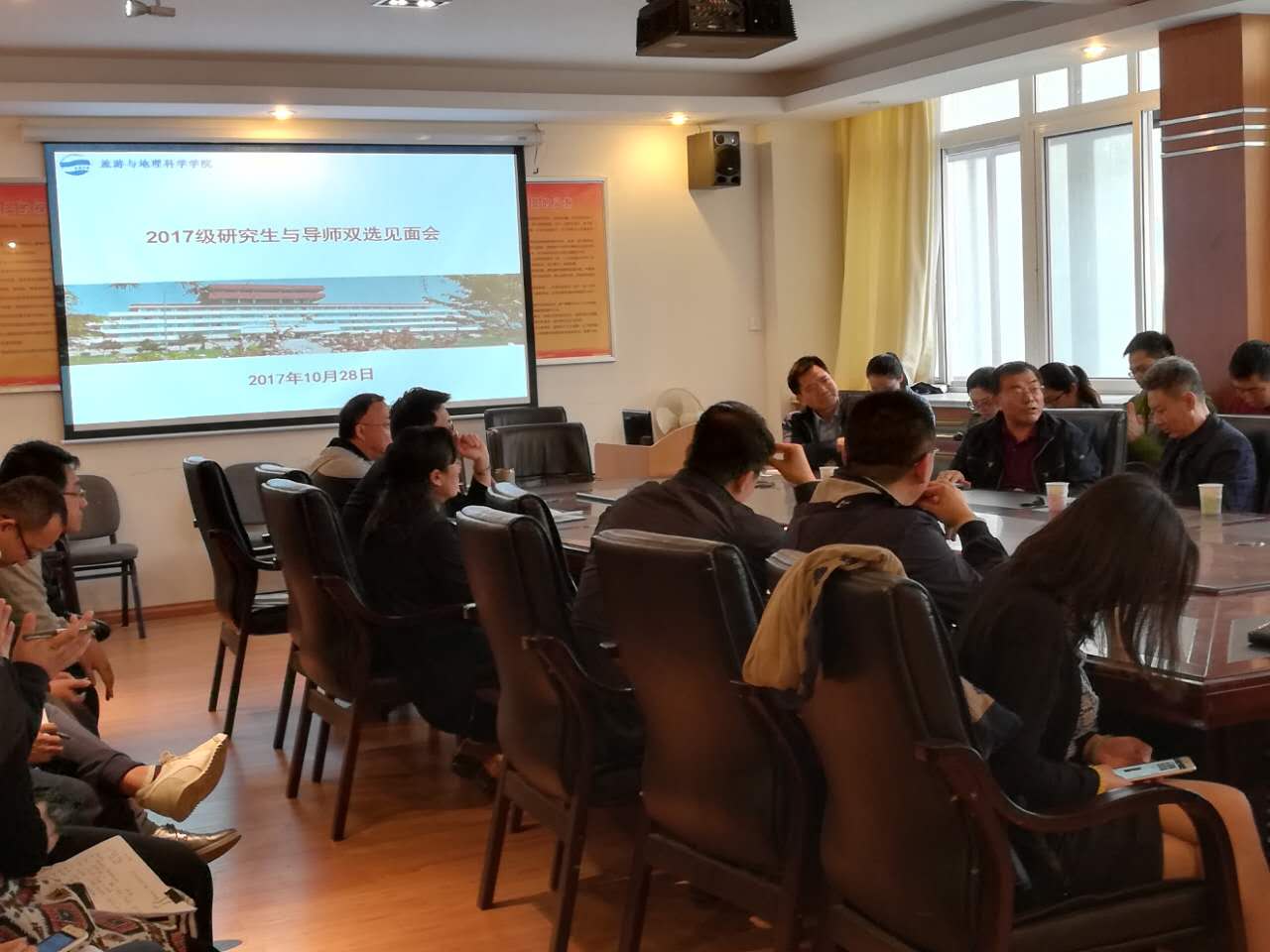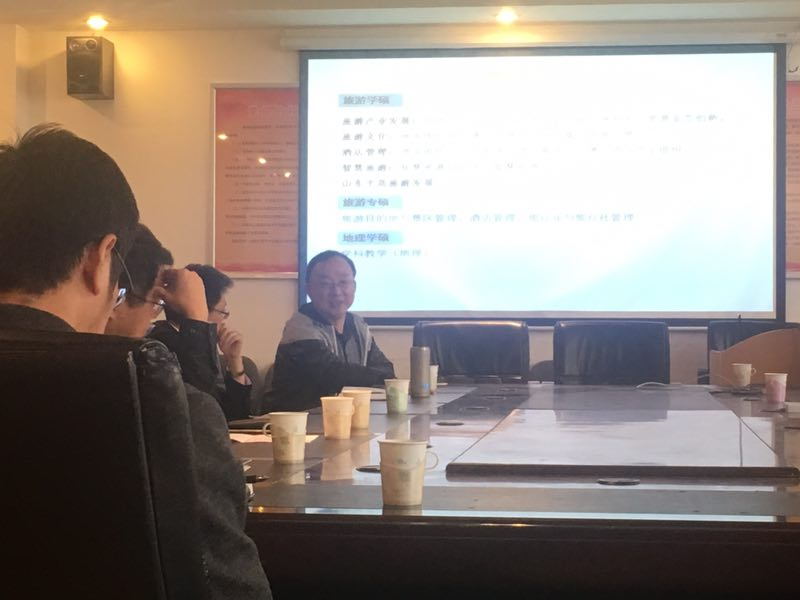 2017年10月28日下午2点,我院研究生导师双选会暨见面会在睿思楼220会议室顺利召开。出席本次会议的有马波教授、耿庆汇副教授、张言庆副教授、王平副教授、高德宗副教授、田克勤副教授、唐顺英副教授、于岩平副教授、钟行明讲师、潘永涛讲师、山东老转村美食娱乐有限公司牛虎兵总经理、港中旅国际(山东)旅行社有限公司田平总经理及青岛市旅游局江秀凯副局长等研究生导师以及2017级硕士研究生,见面会由学院研究生分管领导张言庆副院长主持。