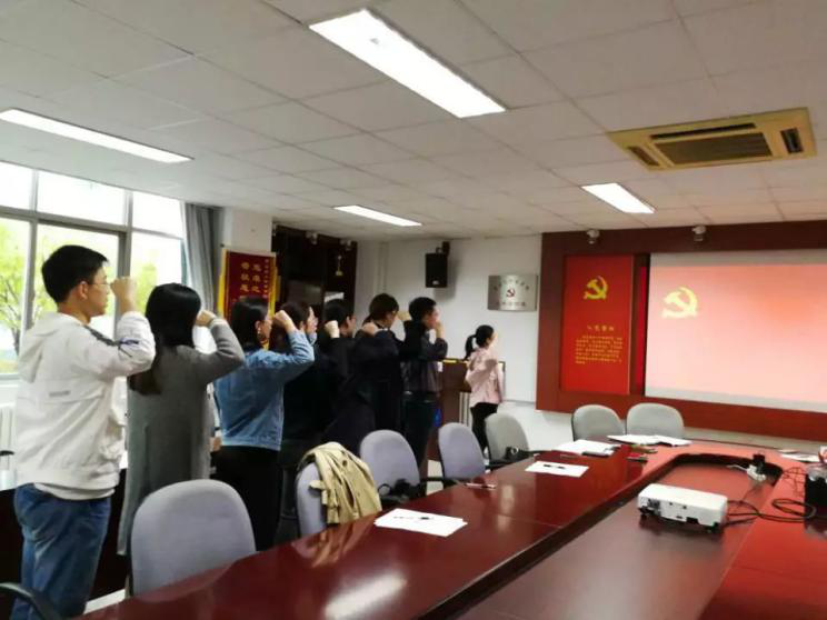 中国共产党人的初心和使命就是为中国人民谋幸福,为中华民族谋复兴!听完支部书记的讲话后,全体党员面向党旗,举起右拳,再次重温了入党誓词。这是对党的承诺,更是对党员最神圣的承诺。