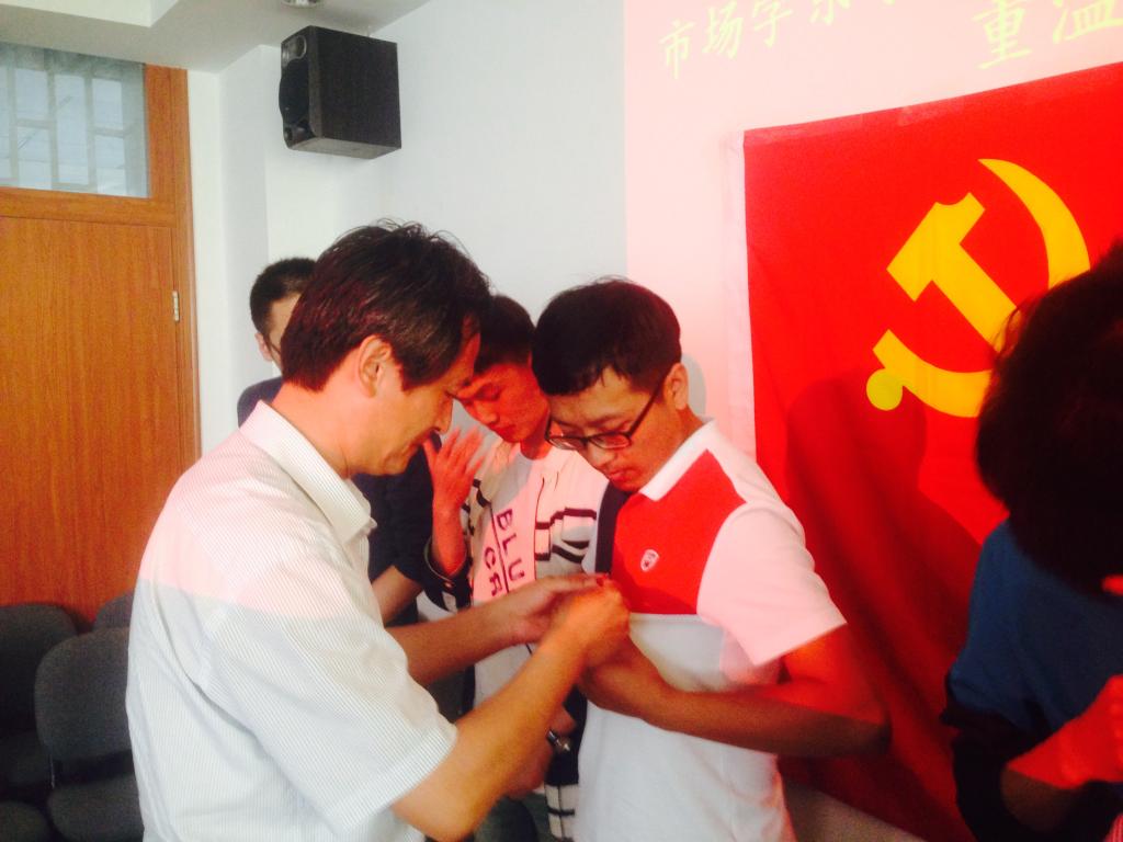 会议随后进行了“戴党徽,跟党走”重温入党誓词仪式。陈崇研书记、房征岩老师和赵业婷老师为学生党员代表佩戴党徽,党员代表依次为其他党员佩戴党徽,全体党员面向党旗,重温入党誓词。