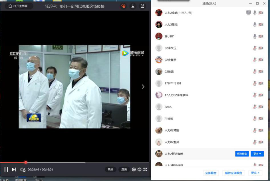 1.利用腾讯会议,集体线上观看《习近平在北京调研指导新型肺炎防控工作》的有关报道,带领同学们深入解读习总书记有关新型肺炎疫情防控工作的讲话精神,并就视频内容展开讨论。