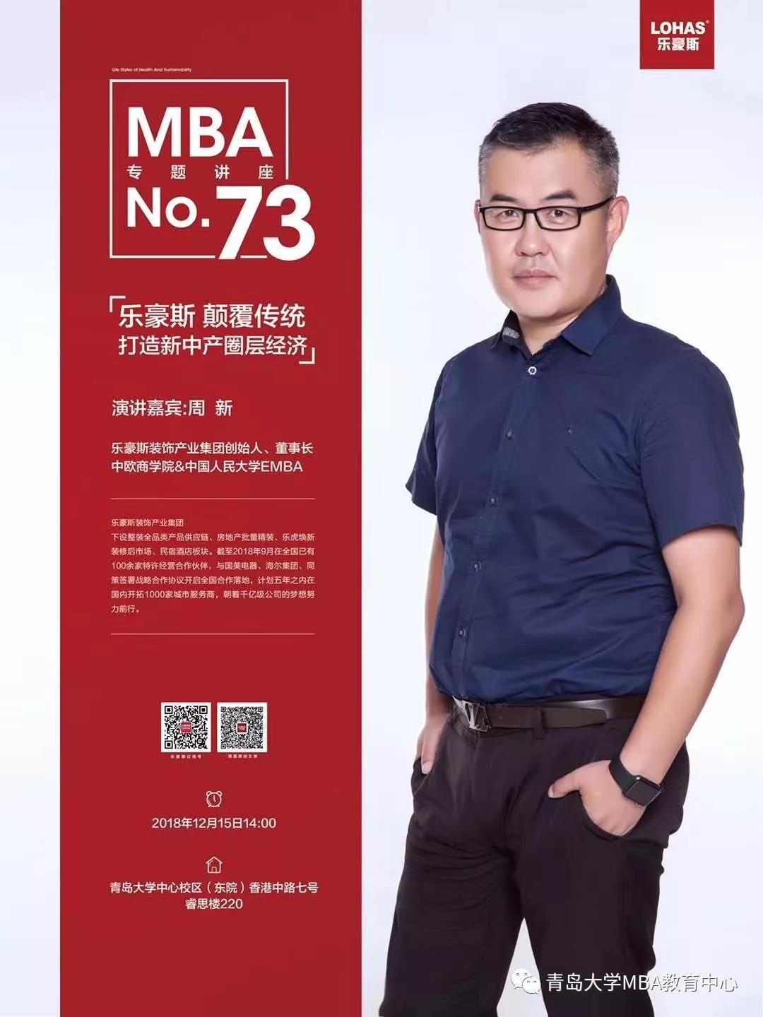 东院睿思楼,乐豪斯装饰产业集团创始人、董事长周新,为2018级MBA学员讲述了《颠覆传统 打造新中产圈层经济》专题讲座。