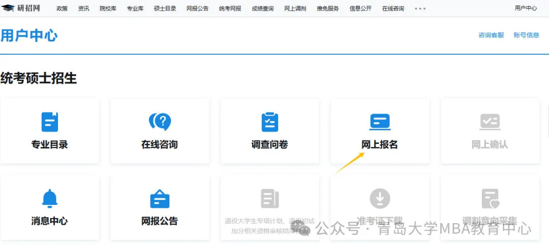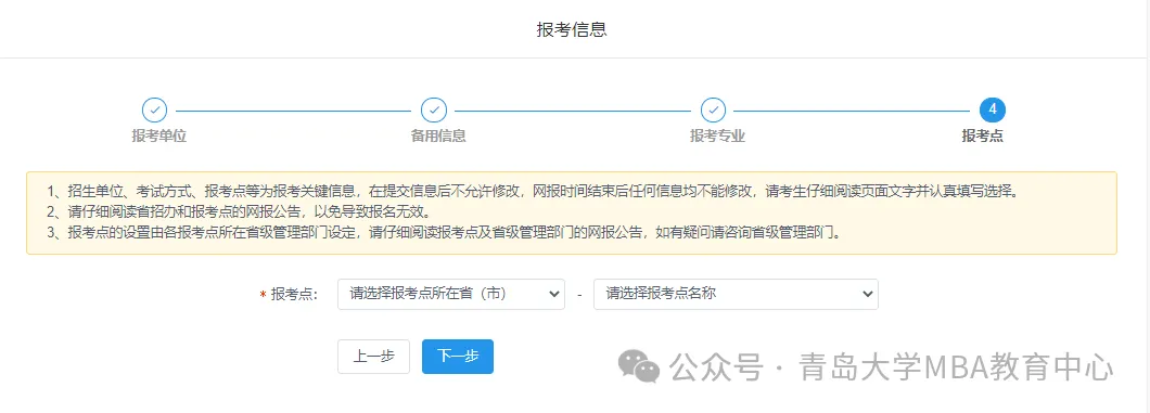 (6)选择报考点。报名过程中,考生应认真阅读各省市招办、招生单位和报考点发布的网报公告,由于违反公告造成无效报名的考生自行承担后果;