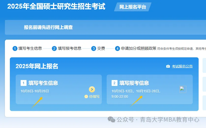 请先填写1考生信息,再填写2报考信息。请点击网报公告,查看招生单位(报考院校)的公告,报考点(考试地点)的公告,请务必仔细阅读报考点公告。