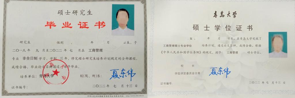 研究生毕业证书和工商管理硕士(MBA)学位证书。