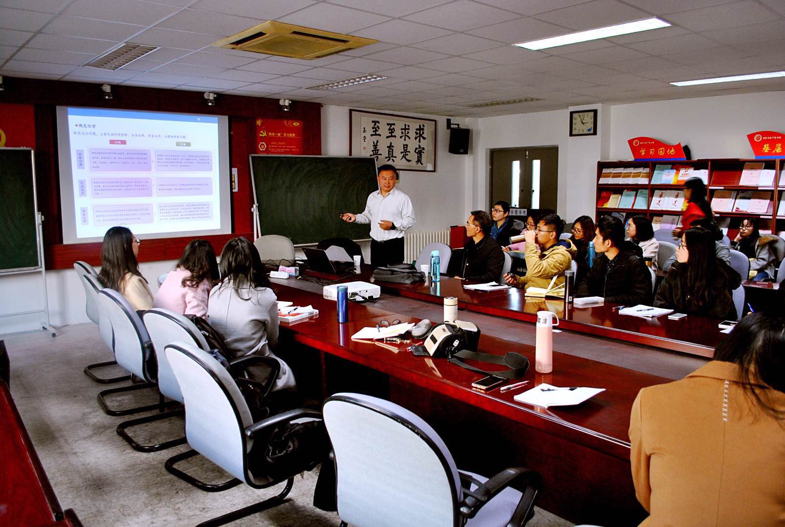 刘斌总裁后来向大家介绍了股权投资,这一部分主要内容有上市企业需要注意的问题,并购对价的支付方式等。在场的各位同学,无一不聚精会神,甚至有同学奋笔疾书进行记录。最后,刘斌总裁精细的讲述了IPO相关内容,如成本检查主要工作等。