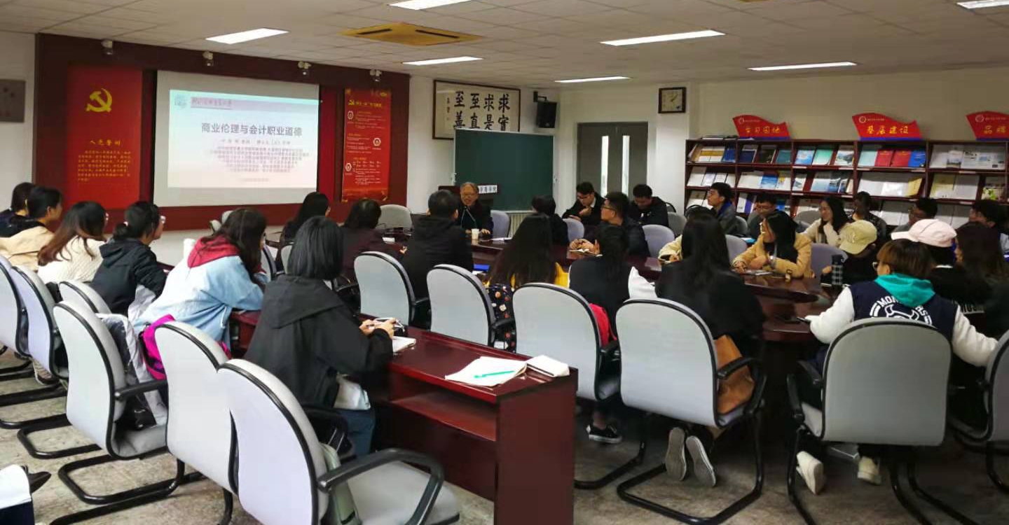 为了加强同学们对会计职业道德的认识,以“商业伦理与会计职业道德” 为主题的专题讲座于2019年10月16日下午2点,在金家岭校区办公楼303室如期顺利举行。
