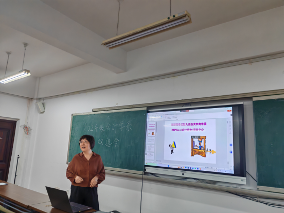 会计学系的基本情况,重点介绍了会计学系专业和学科建设情况、师资条件、研究成果等,并向同学们介绍了会计学系各位导师。