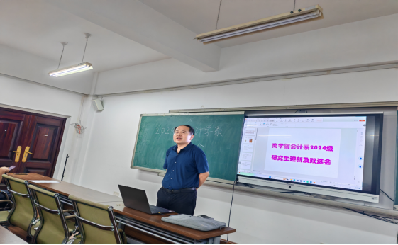 办公楼509顺利召开。本次会议采取了线上线下同步进行的方式进行。会议由会计学系副主任康进军主持。MPAcc中心及会计学系领导、研究生导师以及全体24级会计系研究新生参加了本次会议。